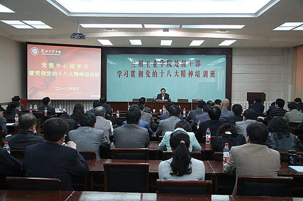 4月16日下午,学校党委中心组集体学习暨贯彻党的十八大精神培训班在第一学术报告厅举行。党委书记高永新主持学习及开班仪式,全体校领导出席仪式并参加学习。全体中层干部参加学习。 培训学习中,观看了清华大学当代国际关系研究院院长阎学通教授作了题为《2013年国际形势发展趋势》的报告录像,报告对2013年国际形势进行了深入阐述。(供稿、摄影/宣传部)