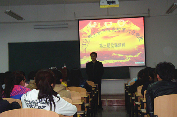 2013年3月25日晚,院党校第六分党校(经济贸易系分党校)在第四教学楼A216举行第三期入党积极分子培训班开学典礼。经济贸易系党总支书记吴倩和66名学员参加了典礼。 开学典礼上,吴倩以“党的性质、宗旨和指导思想;共产党员的条件、义务和权利”为主题,从党的性质、宗旨、指导思想以及共产党员的入党条件、入党程序、所享有义务和履行的权利等方面进行了深入浅出的分析和讲解。最后,吴倩希望每位入党积极分子在学习生活中严格要求自己,牢固树立正确的世界观、人生观、价值观和荣辱观。(供稿、摄影/经贸系)