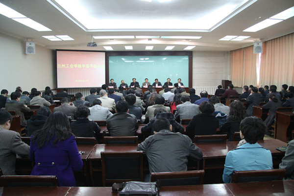 3月12日下午,学校在第一学术报告厅召开2013年第1次中层干部大会。学校领导高永新、陈彪、何春海、冯彪、俞子泓、魏军、廉志端,校长助理李贵山、马铁信出席会议,全体中层干部、正高级职称教师100余人参加会议。会议由党委副书记何春海主持。
