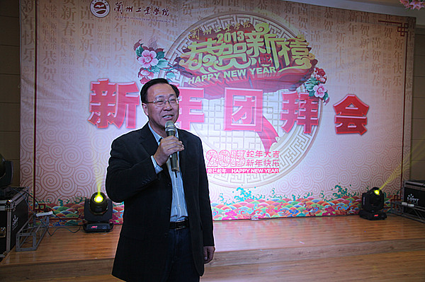 党委书记、校长陈彪发表了热情洋溢的新年贺辞。他首先代表学校向一年来在学校各个岗位上辛勤工作的广大教职员工致以新年的祝福!陈彪说,2012年,是学校发展进程中具有重大而深远意义的一年,是学校发展史上具有里程碑意义的一年。全体师生员工同心协力、攻坚克难,教学、科研、学生、后勤、管理与服务等各项事业取得了显著成绩;图书馆、科技馆等标志性建筑工程竣工,基础设施建设、征地工作取得了突破性的进展;特别是兰州工业学院揭牌暨建校70周年的成功举行,标志着学校正式跨入了本科院校行列,为学校今后发展提供了广阔平台。实践证明,学校全体教职员工特别能吃苦、特别能战斗、特别能奉献,取得一个又一个辉煌业绩。我们不会忘记大家在学校发展中所付出的艰辛劳动,不会忘记大家在学校发展的关键时期克服困难、百折不挠的精神,这是学校今后工作的宝贵财富。