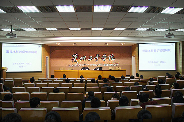 11月12日下午,我校教育观念大讨论专题报告会在第二学术报告厅举行,兰州理工大学校长助理、材料学院院长路文江教授应邀作了题为《透视本科教学管理制度》的报告。党委书记、院长陈彪主持报告会,副院长冯彪、俞子泓、王华栋、魏军,院长助理、教务处长李贵山,院长助理、组织部长马铁信,总会计师、财务处长王多兴出席会议。全体教职员工、各班班长聆听了报告。