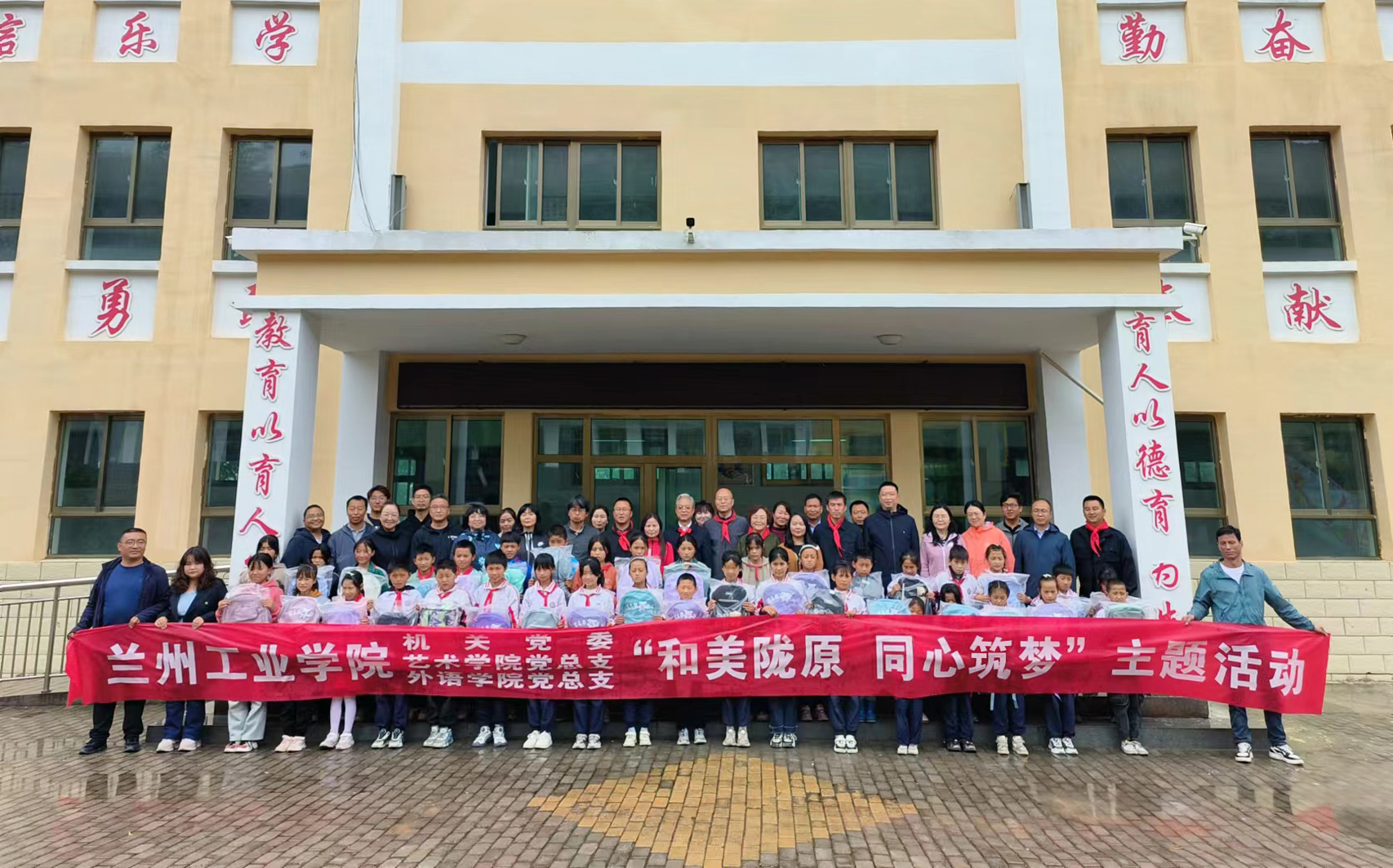 孟夏时节,爱心涌动。5月29日-30日,六一儿童节来临之际,机关党委、艺术设计学院和外国语学院师生满载爱心,走进临夏回族自治州积石山县蔚林小学,开展“童心守护 关爱相伴”——“爱心书包”捐赠活动。校党委副书记黄荟铭,党委委员、副校长罗均华,党委委员、统战部部长张红岩出席活动。