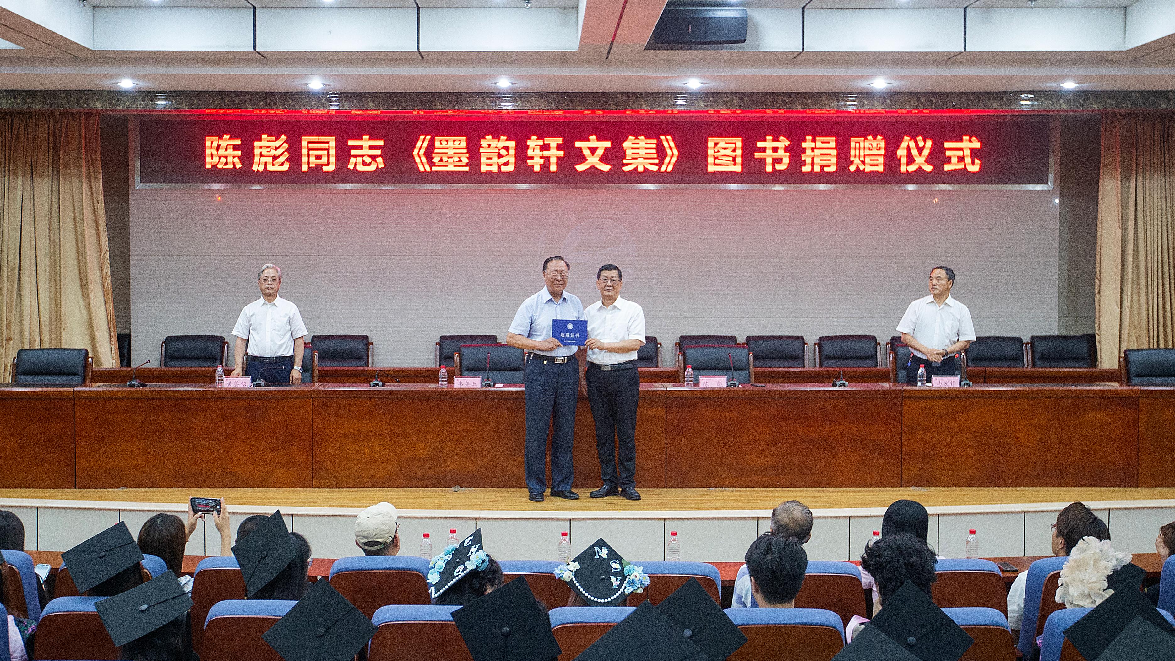 夏意浓浓,骄阳似火。6月19日,学校在第三学术报告厅举行陈彪著作《墨韵轩文集》捐赠仪式,党委书记韦尧兵、党委副书记黄荟铭出席仪式,党委委员、副校长马宏锋主持仪式。