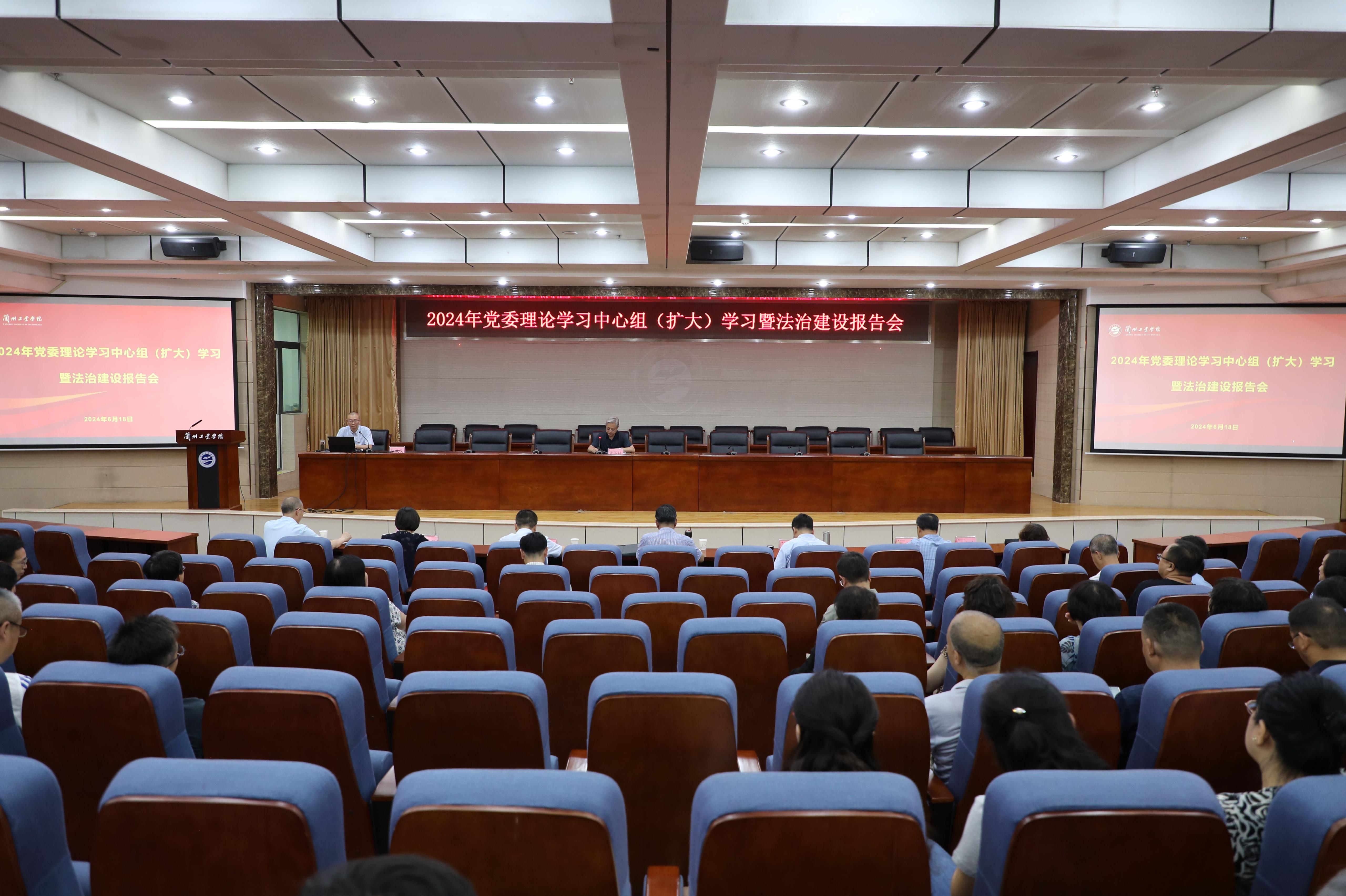 6月18日下午,学校在第三学术报告厅举行2024年党委理论学习中心组(扩大)学习暨法治建设报告会,甘肃省委党校(甘肃行政学院)政治和法律教研部副主任徐世平教授应邀作专题报告。党委书记韦尧兵,党委副书记、校长刘新辉及其他在家校领导出席报告会。党委副书记黄荟铭主持报告会。