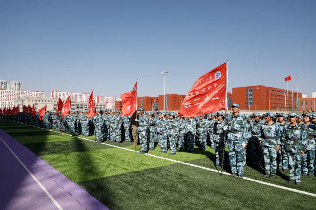 军训结训仪式上,参训学生进行了军体拳、旗语操、棍术、砺剑军舞、女生匕首操、反恐防暴演习六个科目的汇报演出。