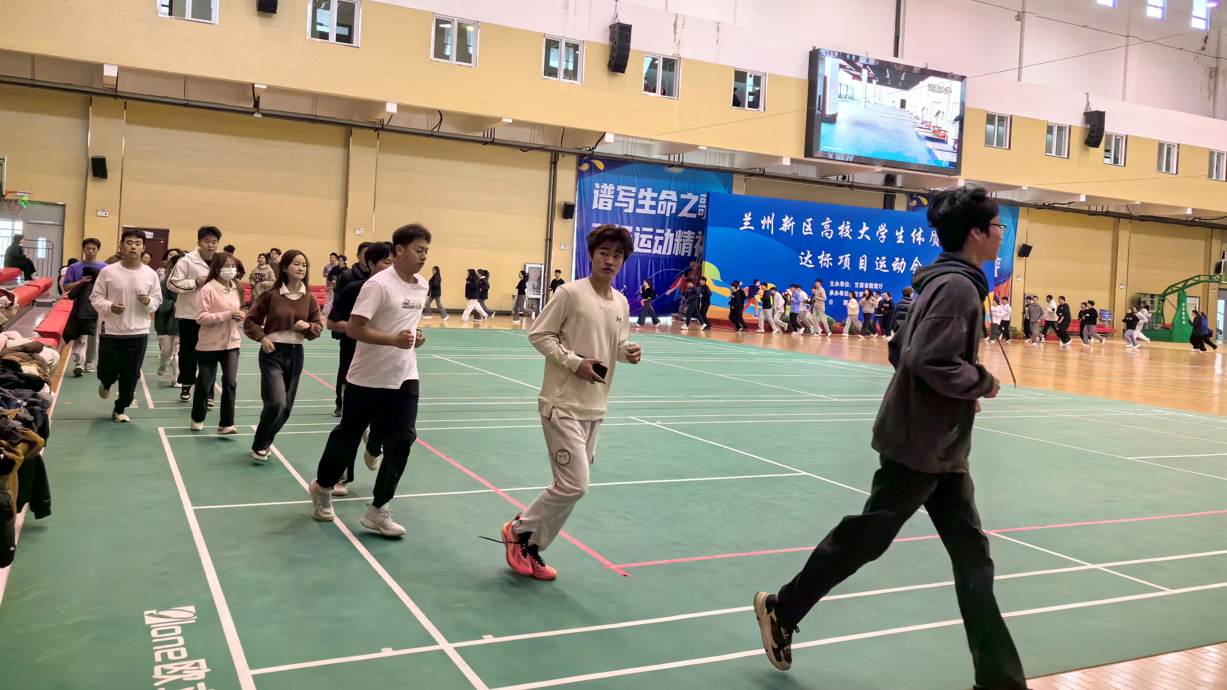 11月16日—17日,由甘肃省教育厅主办的2024年兰州新区高校大学生体质健康达标项目运动会在甘肃财贸职业学院举行。来自新区7所学校的1500余名学生参加比赛,学校副校长李向伟出席开幕式。