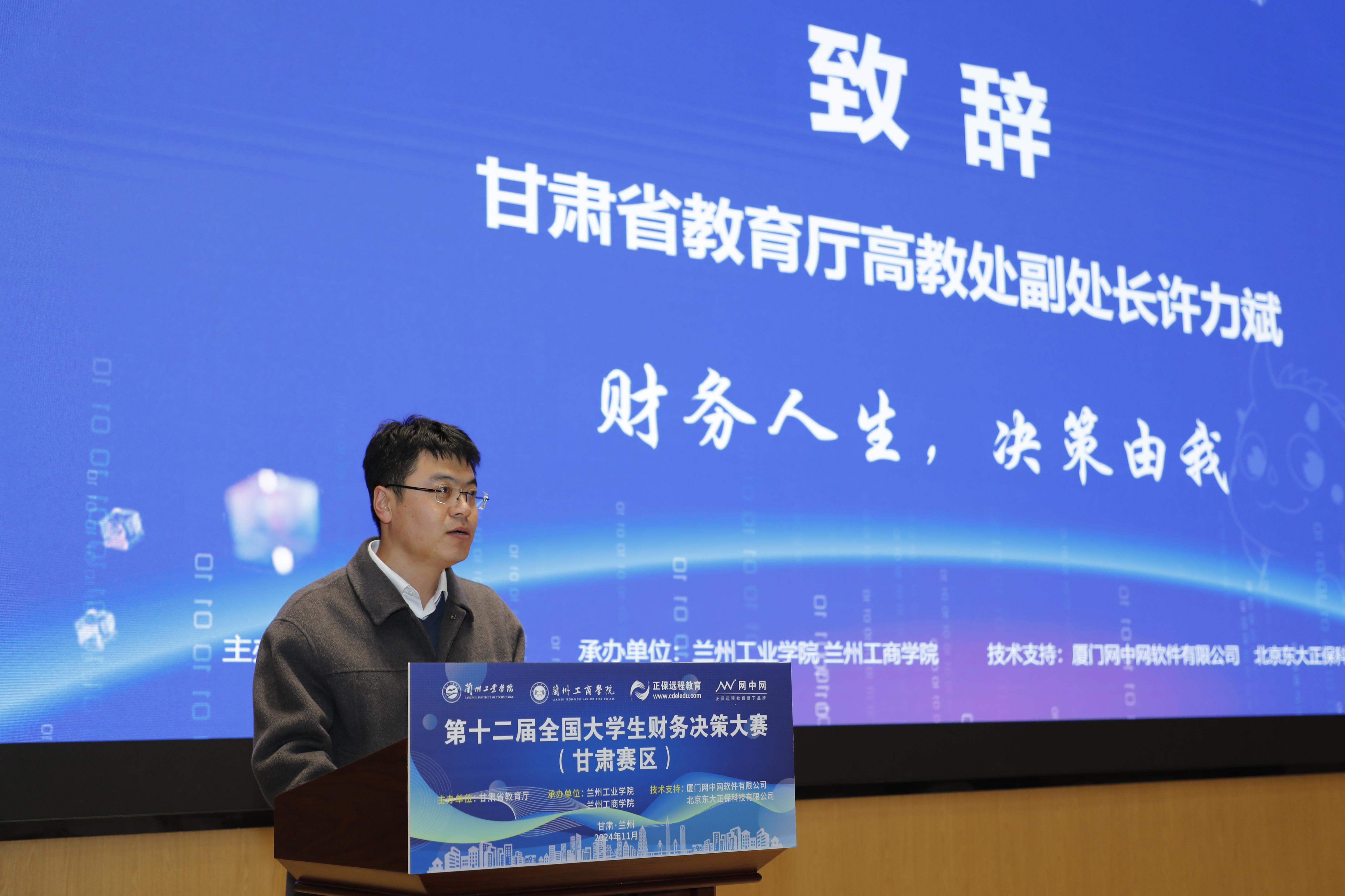 党委委员、副校长罗均华,甘肃省教育厅高教处副处长许力斌,兰州工商学院副校长张春庆,厦门网中网软件有限公司副总裁田久学出席大赛开幕式。罗均华代表学校致欢迎辞。他指出,在新校区举办本次大赛,是对学校教育教学水平和综合实力的肯定,也是对学校师生专业技能和创新思维的一次全面检阅,希望通过大赛,进一步促进学校与兄弟院校之间的交流与合作,共同推动财会专业人才的全面发展。