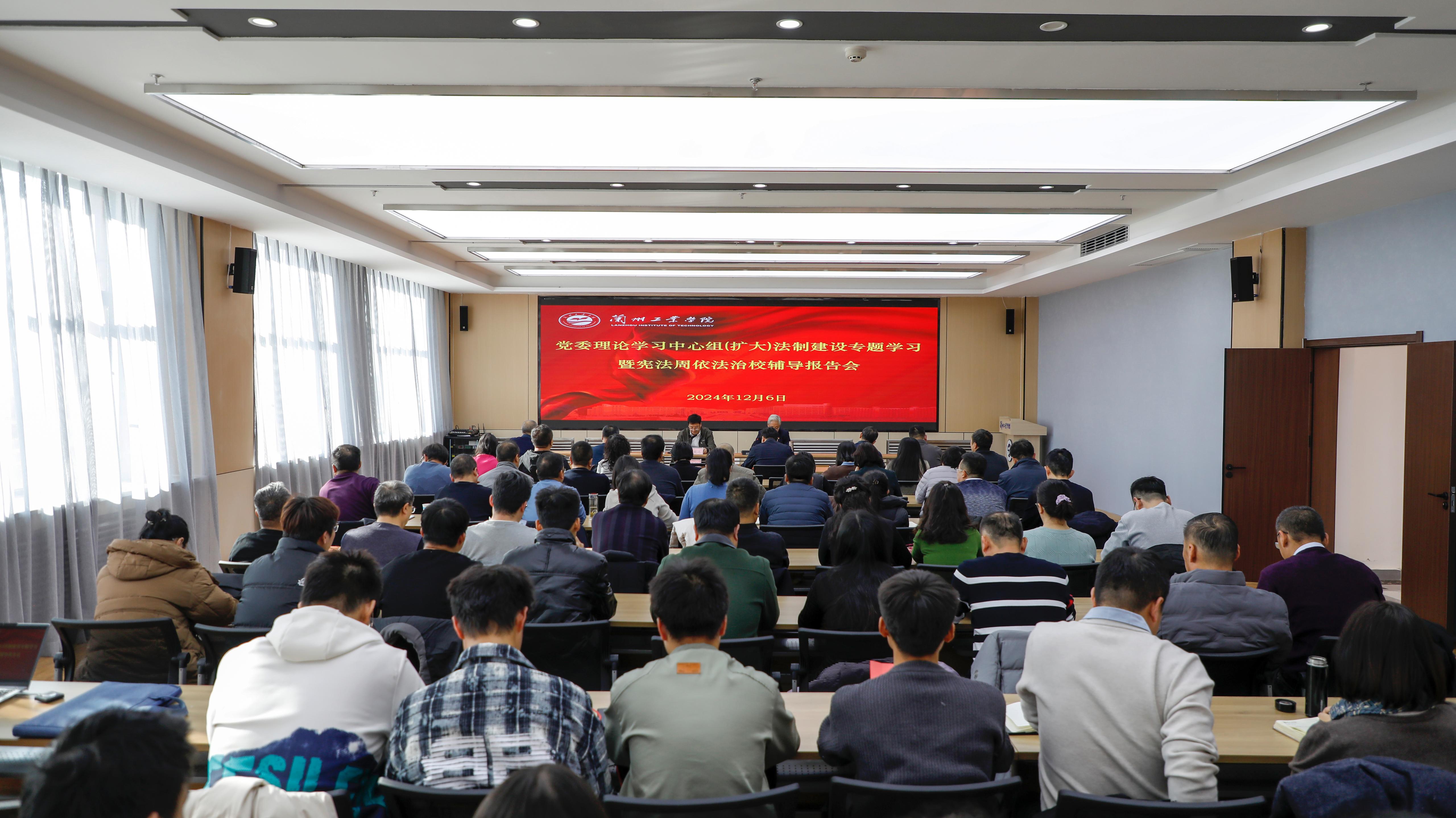 12月6日,学校举行校党委理论中心组(扩大)法治建设专题学习暨“宪法宣传周”依法治校报告会,党委副书记黄荟铭主持,在家校领导出席,部分中层干部及学生代表参加。报告围绕“中国为什么选择法治道路”“习近平法治思想是全面依法治国的根本遵循和行动指南”“坚持把学习宣传贯彻习近平法治思想贯穿于依法治校全过程各方面”三个方面进行了全面系统、深入浅出的阐释解读,并对我校今后法治建设工作提出了指导性意见。