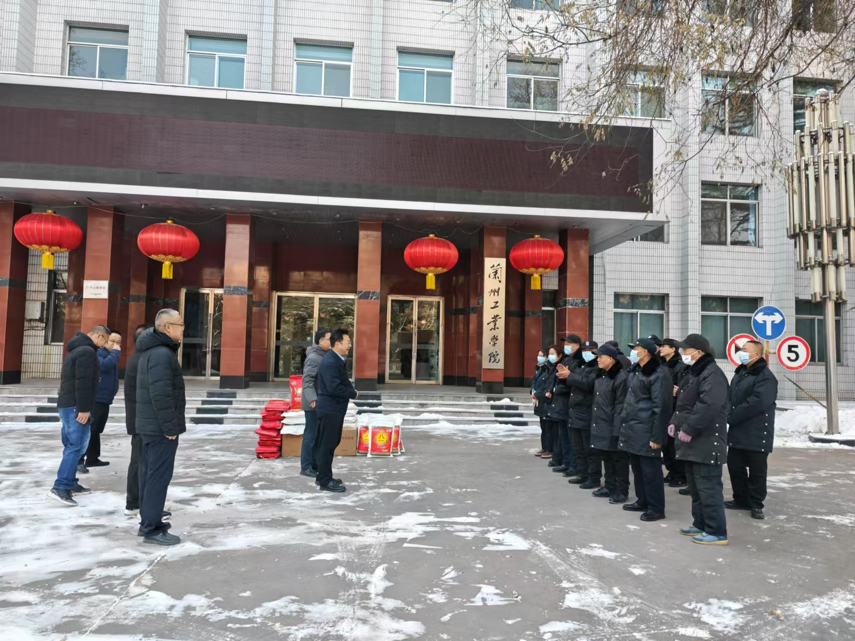 1月26日,在蛇年春节来临之际,校长刘新辉带队对后勤服务人员、保卫执勤人员、公寓管理人员等寒假值班人员进行慰问,并致以节日的问候和新春的祝福。