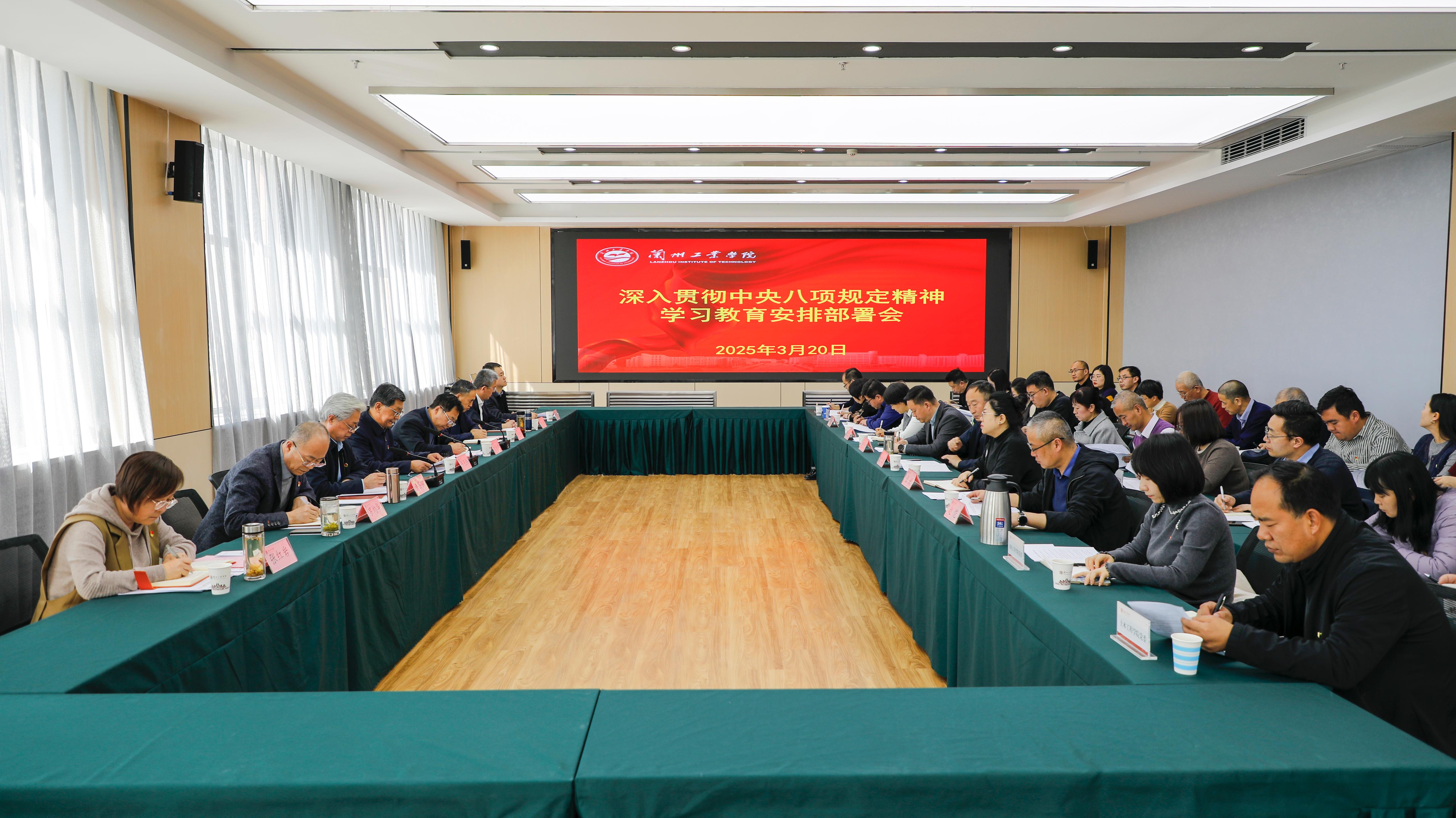 会议指出,开展深入贯彻中央八项规定精神学习教育,是全校党组织和党员今年最重要的政治生活和组织生活。全校上下要深入学习习近平总书记关于加强党的作风建设的重要论述,深刻认识开展此次学习教育的重大意义,把思想和行动统一到党中央重大决策部署上来,全面落实学习教育各项工作任务,把作风建设贯穿到管党治党、办学治校、立德树人全过程各方面,统筹推进党风校风、教风学风、师德师风建设,持续形成和巩固严的氛围,营造风清气正的环境,以锤炼过硬作风推动学校各项事业高质量发展。