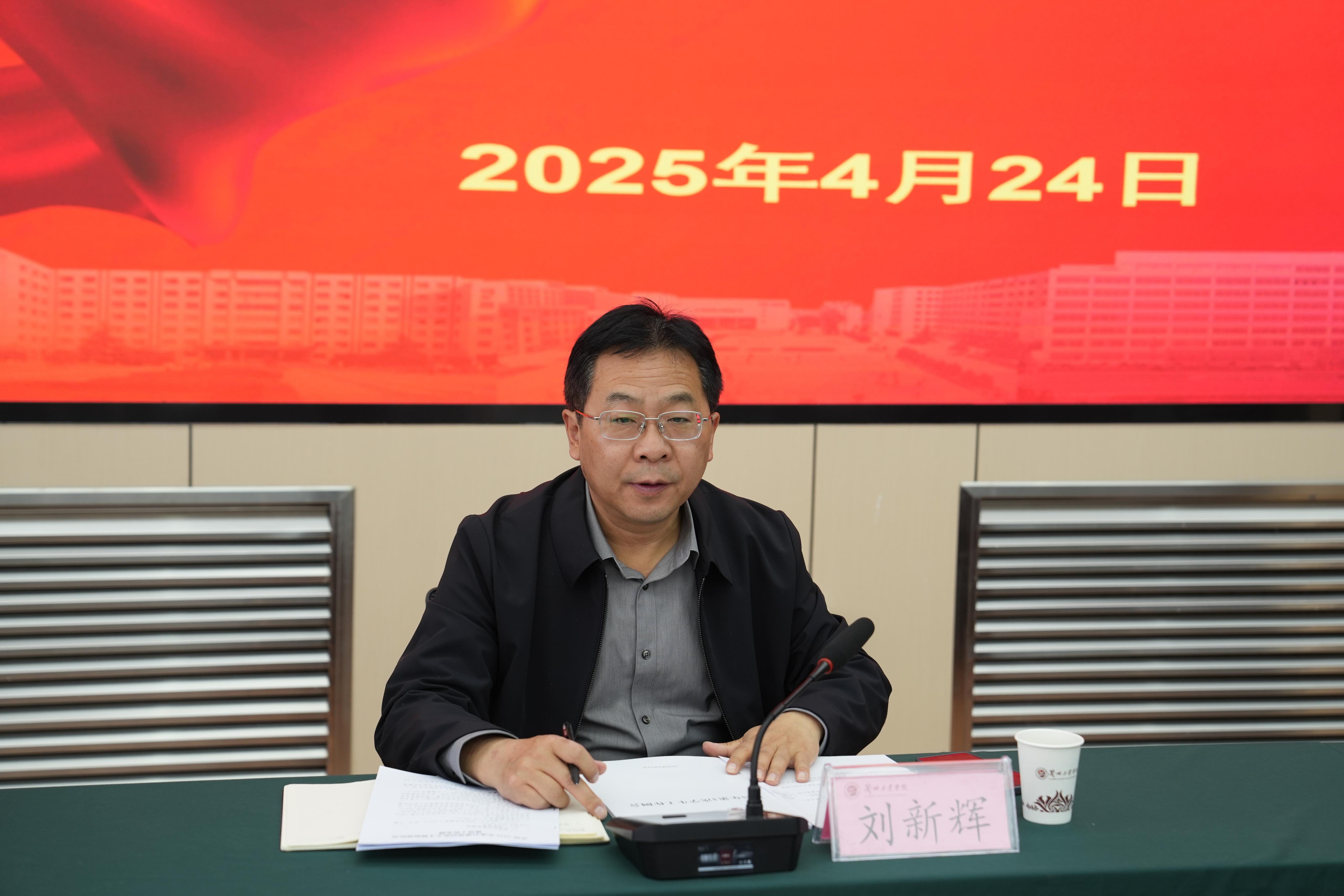 刘新辉讲话强调,要坚定不移落实人才强校战略,根据专业布局,科学谋划 2025 年度人才引进计划;要强化思想引领,持续深化学风建设,通过正面教育引导学生树立积极向上的价值观与世界观;要深刻认识当前就业形势的严峻性和重要性,增强紧迫感与责任感,通过强化就业指导,引导毕业生树立正确就业观、提升求职能力,全力推进访企拓岗专项行动。