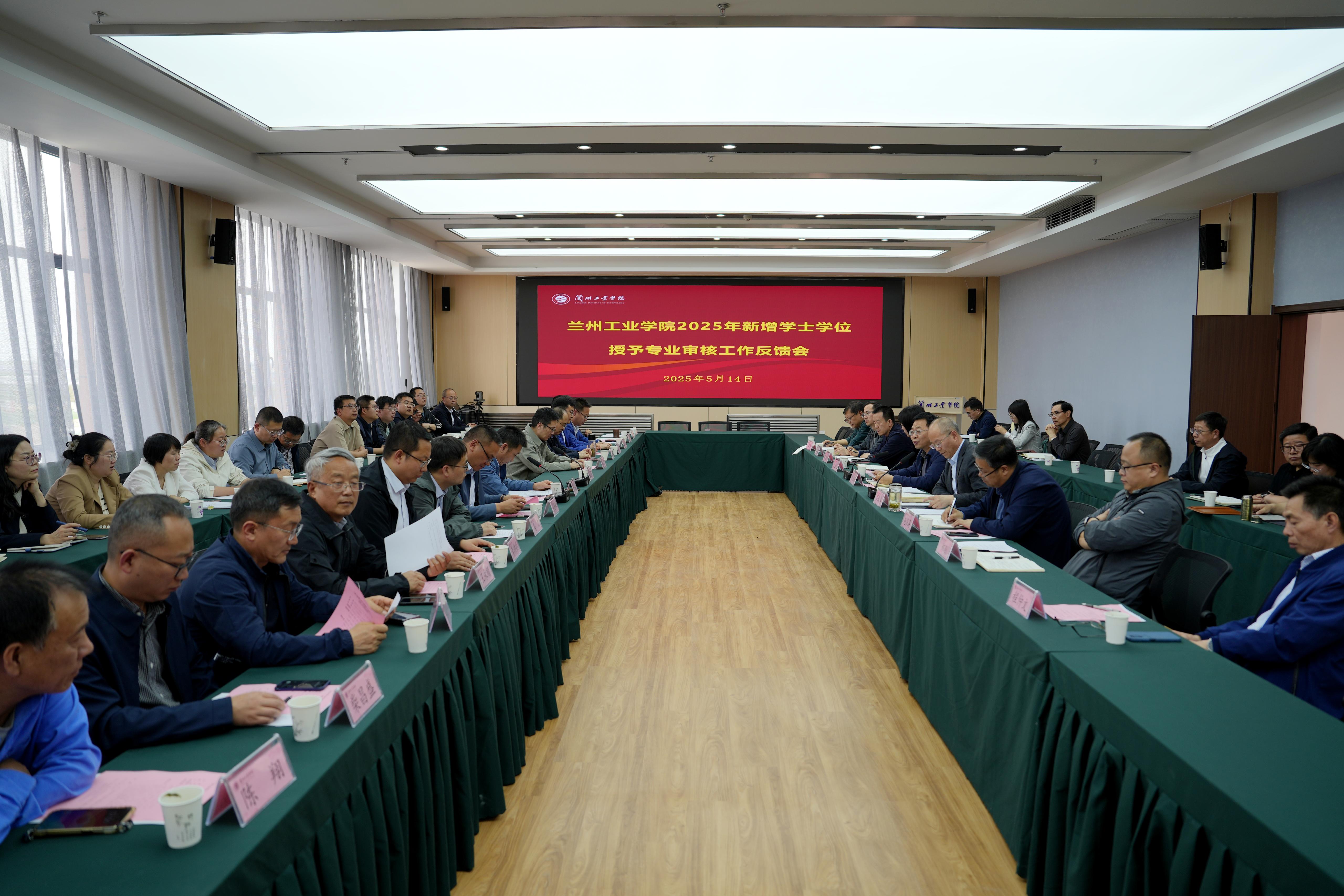 5月14日,以兰州交通大学张友鹏教授、兰州理工大学彭斌教授为组长的甘肃省学位委员会专家组一行16人来我校开展2025年新增学士学位授予专业审核工作。学校在行政楼231会议室召开专家反馈会,学校党委副书记、校长刘新辉出席反馈会并讲话,副校长罗均华主持会议。