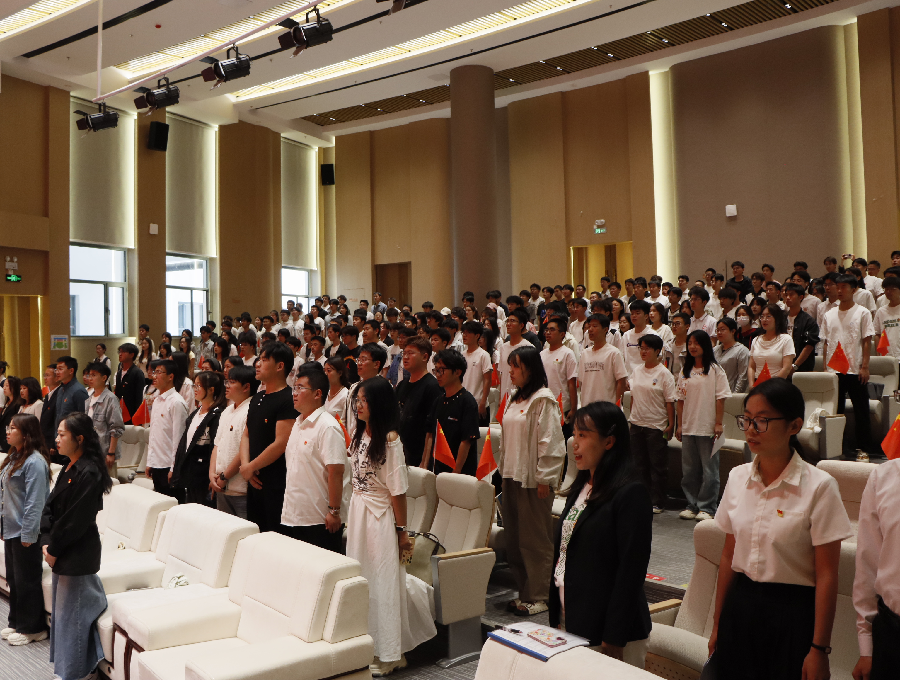 纪委、党委宣传部、党委学工部、校团委、马克思主义学院负责同志,全体教工团干,第13期“青马班”代表,第14期“青马班”全体学员及学生组织代表200余人参加会议。