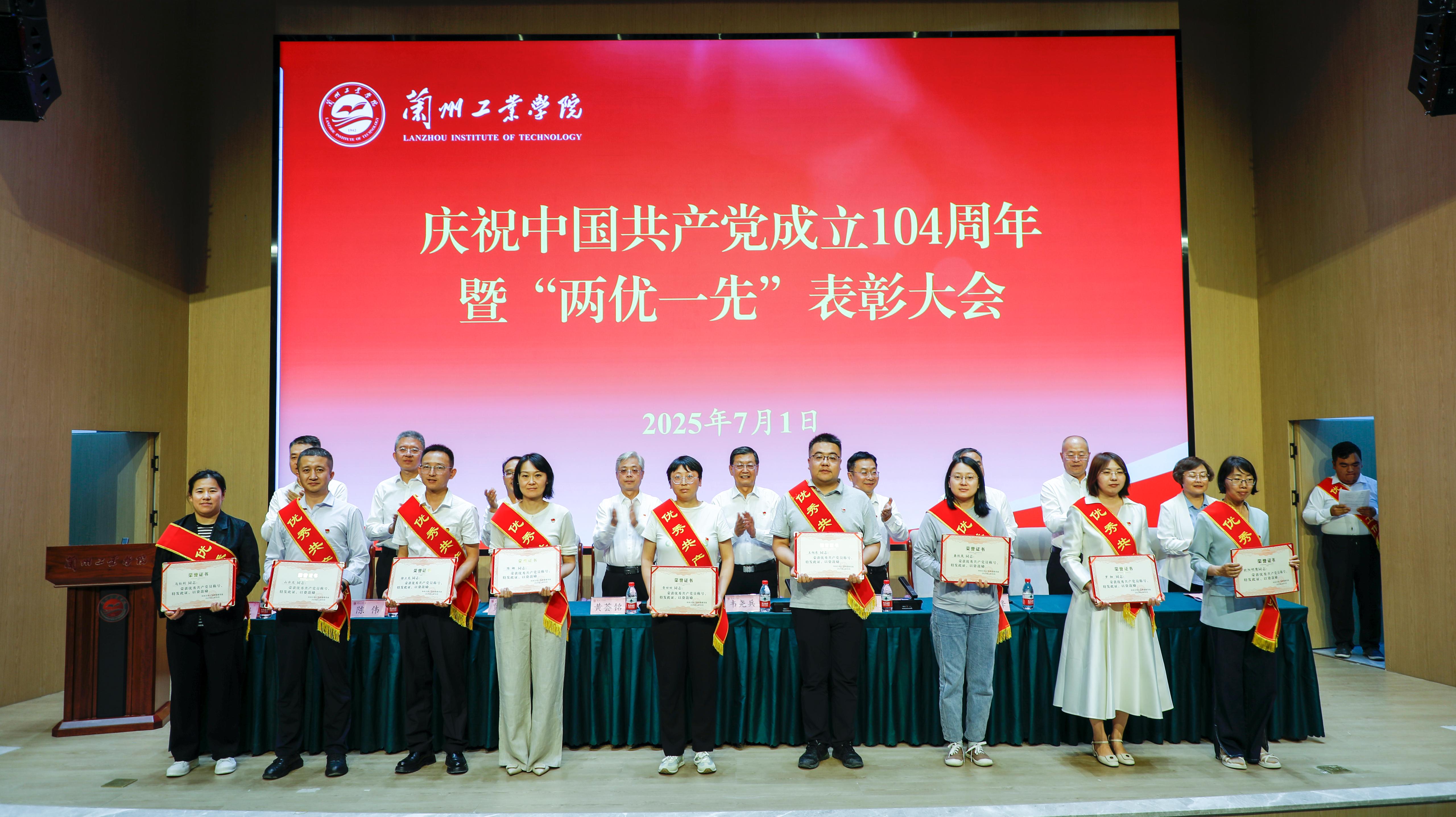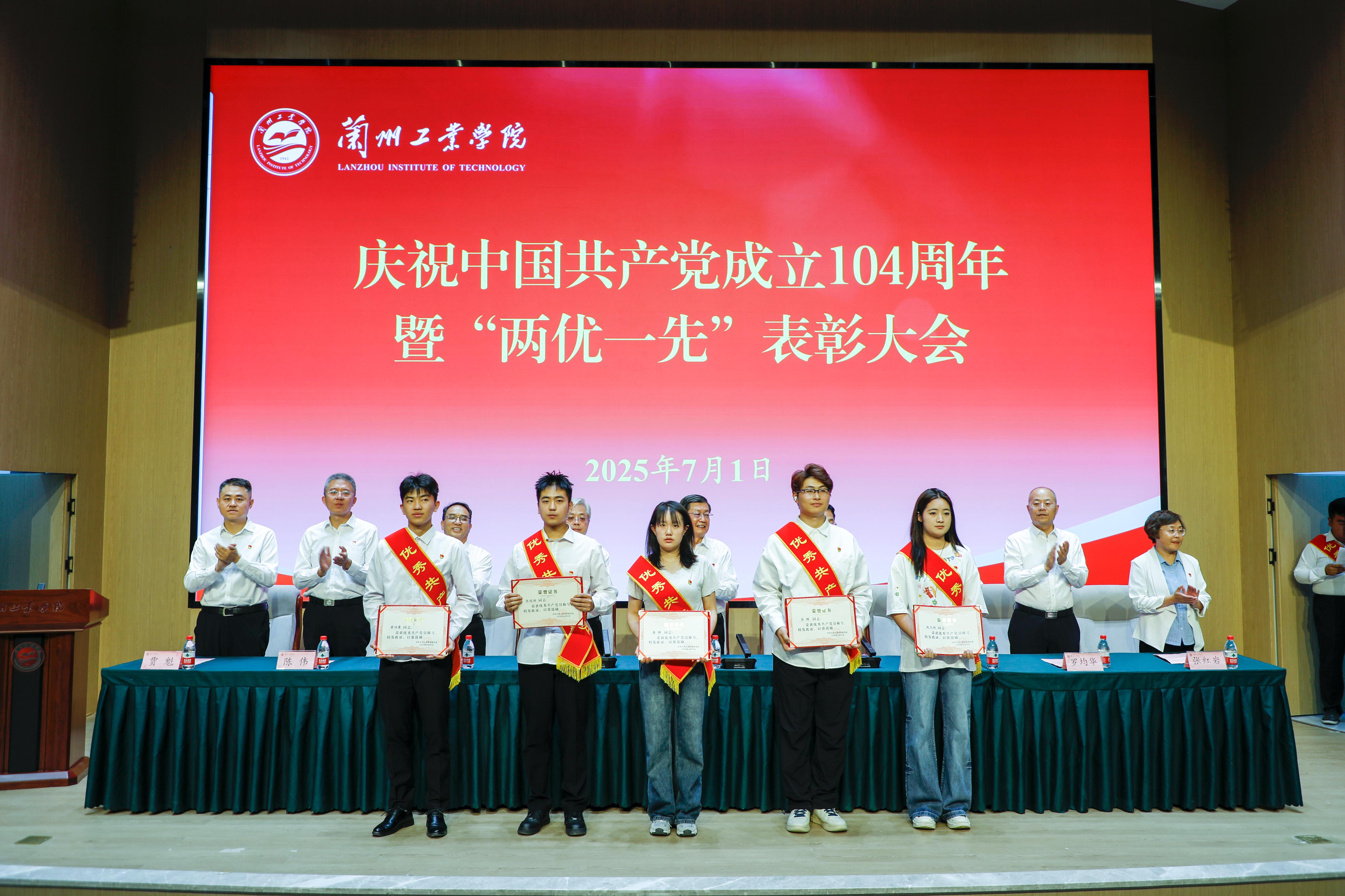 大会在庄严雄壮的国歌声中拉开序幕。面向鲜艳的党旗,全体师生党员举起右拳宣誓,共同将铮铮誓言与初心印刻心中。党委副书记黄荟铭同志宣读了“光荣在党50年”纪念章获得者名单和《中共兰州工业学院委员会关于表彰2025年“两优一先”的决定》。韦尧兵为“光荣在党50年”纪念章获得者代表陈彪同志、李云同志颁发纪念章,与会领导依次为受表彰的75名先进个人和6个先进单位颁奖。
