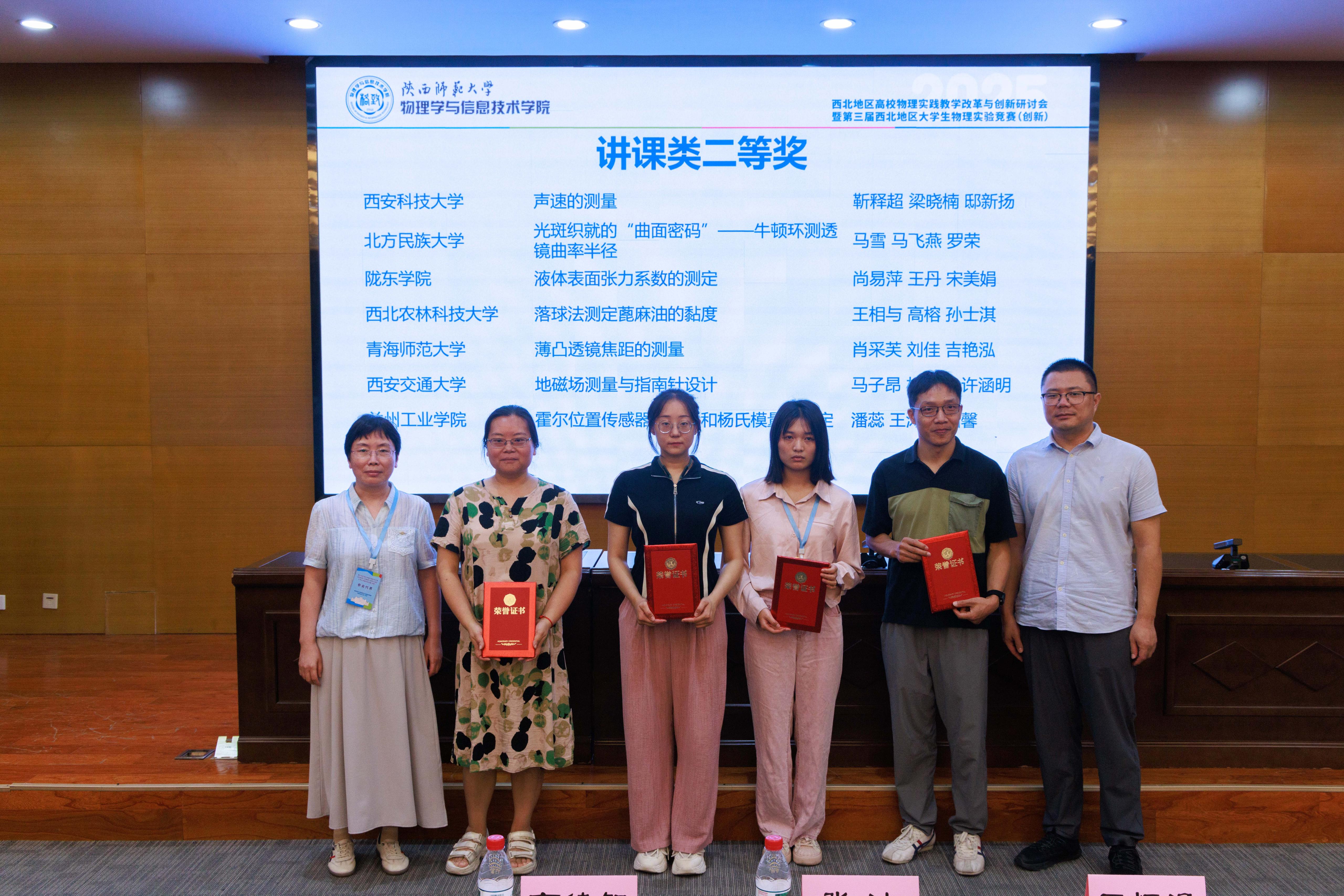 近日,由全国大学生物理实验竞赛组委会西北地区分委员会主办、陕西师范大学和西安交通大学承办的第三届西北地区大学生物理实验竞赛(创新)决赛在陕西师范大学长安校区举办,经过激烈角逐,我校学生潘蕊、王涛和王涵馨组成的代表队(指导教师:简粤)荣获二等奖。