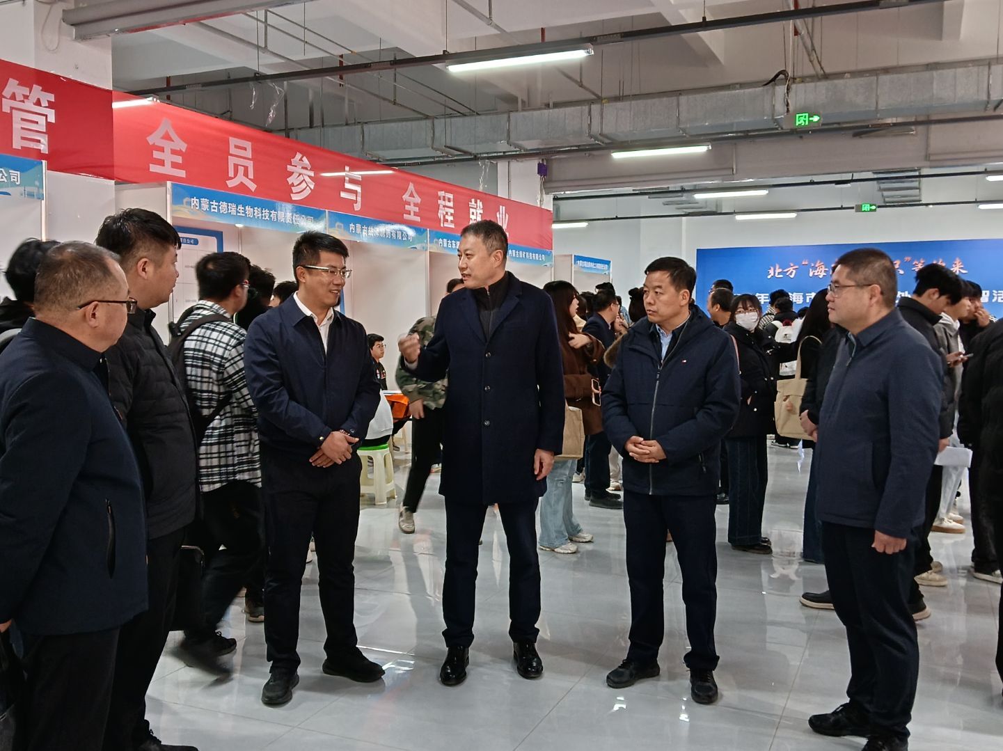 白江平、王佰成、张宁、贾怀志来到“招才引智”专场活动招聘现场,与22家重点企业亲切交流,详细了解海南区发展现状、产业结构布局及本次招聘岗位需求与学生应聘情况。