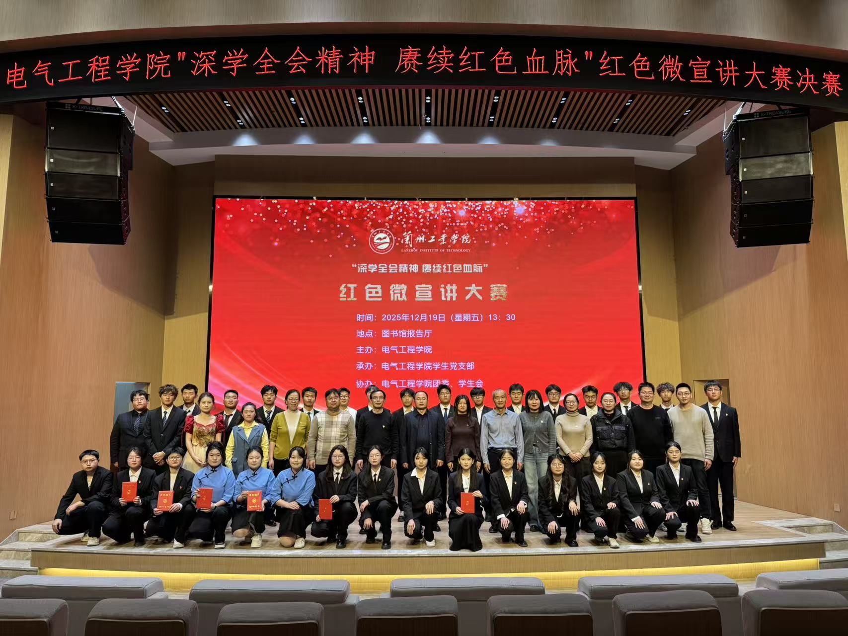 为深入学习宣传党的二十届四中全会精神,创新理论宣传载体与形式,组织引导青年学子以生动视角讲好中国故事、传播时代强音,切实推动党的创新理论深入青年,12月19日下午,电气工程学院在图书馆报告厅举办“深学全会精神 赓续红色血脉”红色微宣讲大赛决赛。校党委副书记黄荟铭出席微宣讲活动。