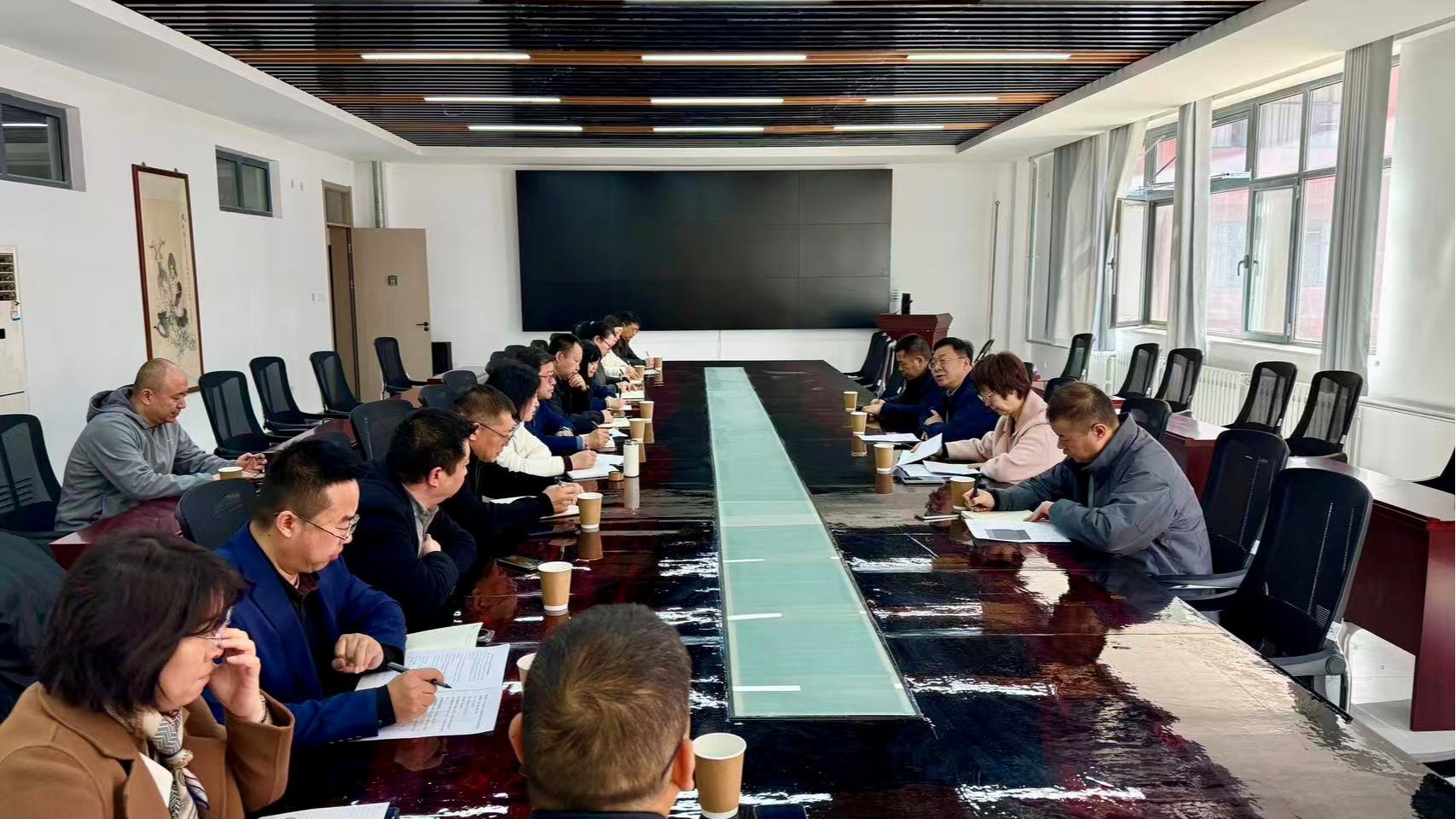 实地督查结束后,刘新辉在艺术设计学院会议室主持召开工作推进会。他指出,本次实地督导的核心目的是紧盯目标、压实责任、破解堵点、提速增效,确保国家专项政策落地见效,把宝贵国债资金转化为学校办学提质的硬核支撑。针对项目实施进度不平衡、衔接不顺畅等问题,刘新辉强调,一要高度重视。超长期特别国债设备更新项目,是国家赋能教育提质、助力高校发展的重大政策红利,要以检验政治执行力和责任担当为重要标尺,切实管好用好项目、保质保量推进,快速补齐硬件短板,助力教学质量提升、学科专业升级、申硕目标冲刺。二要加快进度。国债设备项目要在今年年内全部完成,招标中心、国资与实管处、财务处要协同各项目单位,逐一梳理项目进度,每月开展项目进度调度,严格按照合同约定,重点加快供货节点、场地配套、安装调试以及验收、安全、支付等各环节工作;各项目单位特别是院长要履行主体责任,全程跟进、主动对接,确保项目高标准推进、高效率落地。三要强化效能。杜绝“重采购、轻管理”,设备投用前同步完善管理制度、操作规程,抓紧开展师资培训,尽快将新设备融入教学实践、科研攻关,避免闲置浪费,切实发挥资金最大效益。