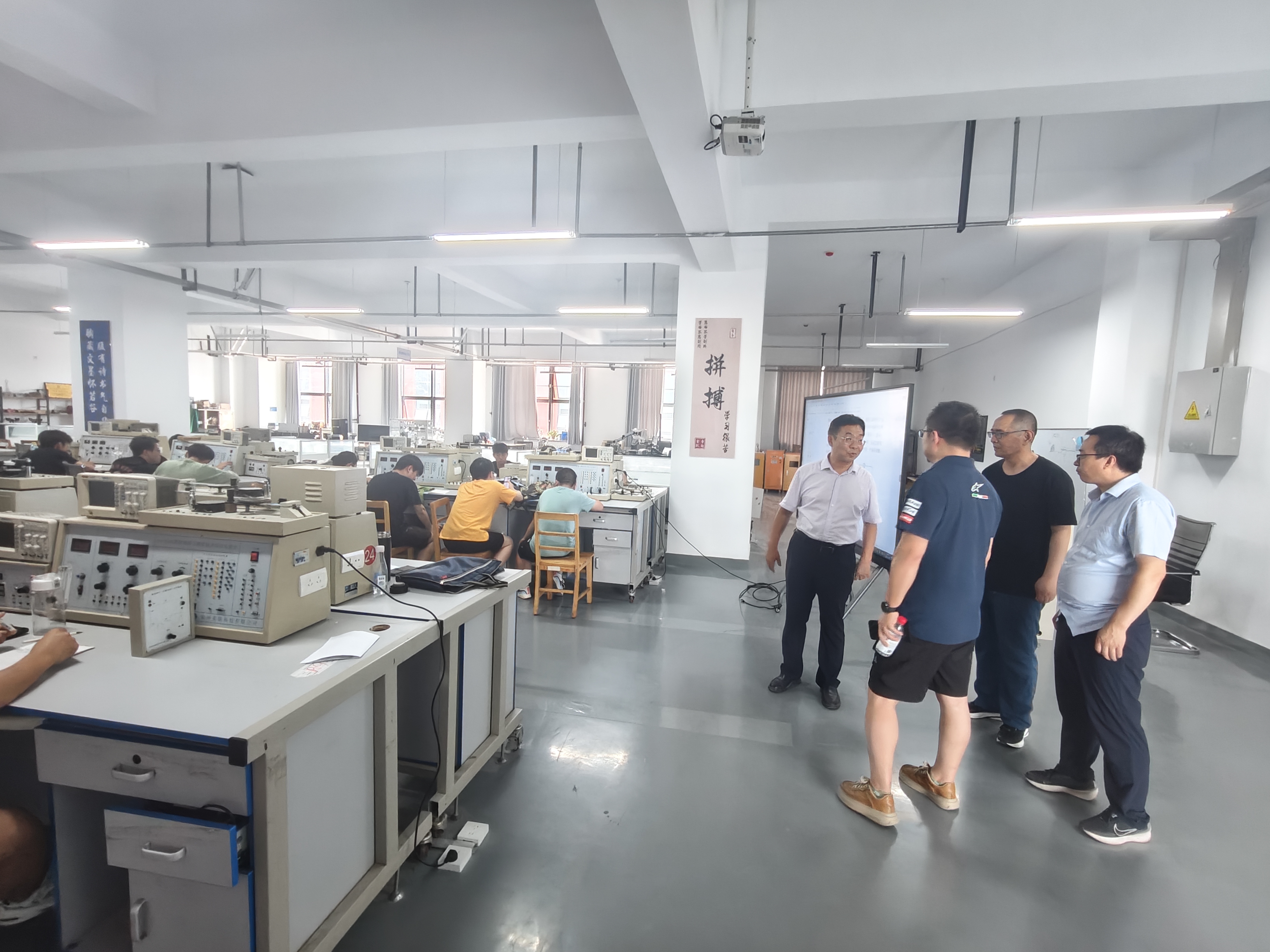 刘新辉重点察看了跟班技术服务工作集体办公室工作任务及服务操作流程,走访了电工(高级)、工业机器人系统运维员(高级)、焊工(高级)及汽车维修工(高级)等17个班级理论教学现场和4个班级创业培训授课现场,以及电工(高级)、工业机器人系统运维员(高级)等8个班级操作训练现场。