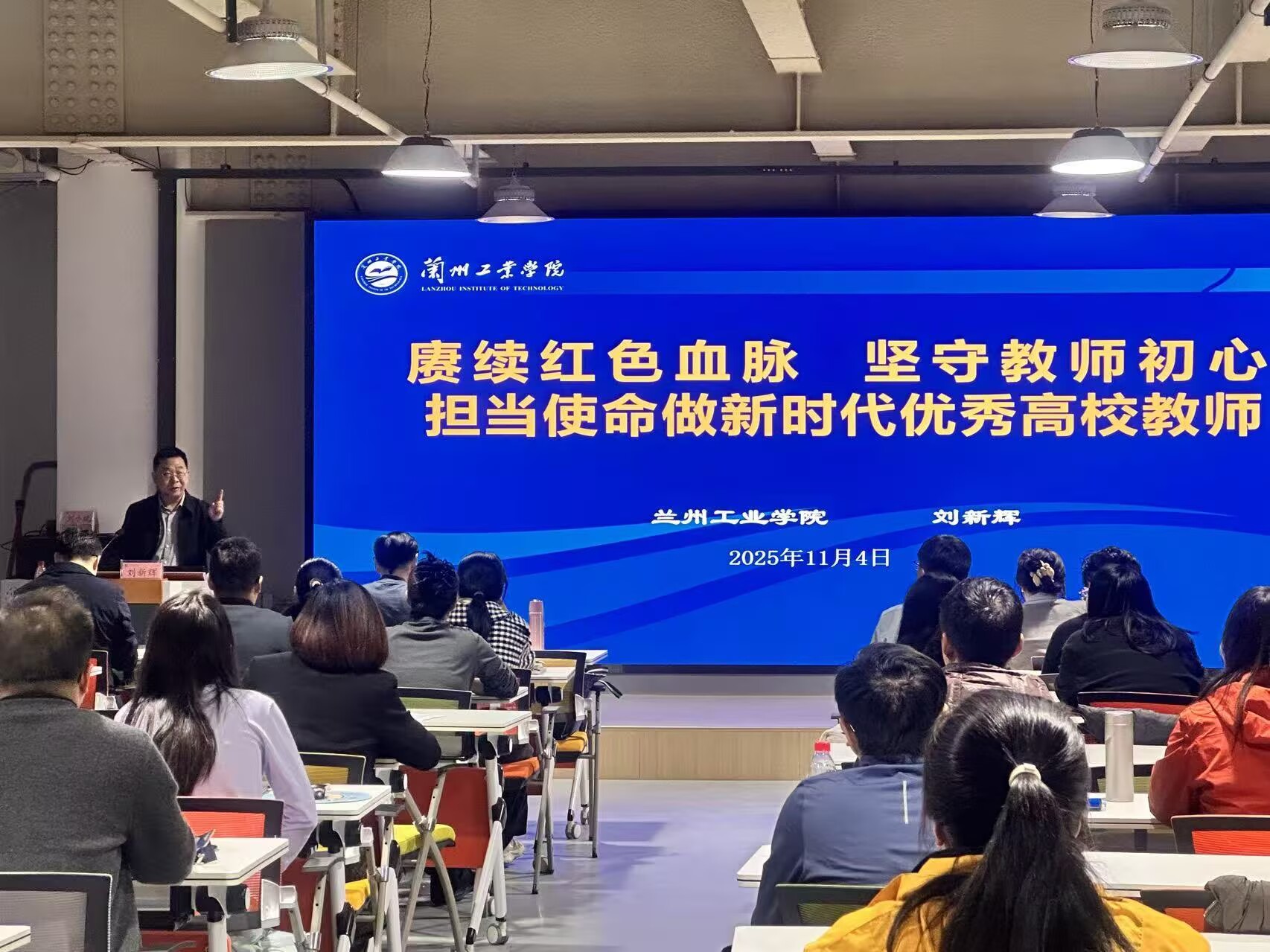 11月4日上午,校长刘新辉以“赓续红色血脉,坚守教师初心,担当使命做新时代优秀高校教师”为题,为全体新教师作了一场精彩生动的系统辅导。报告由人事处处长周耿烈主持。