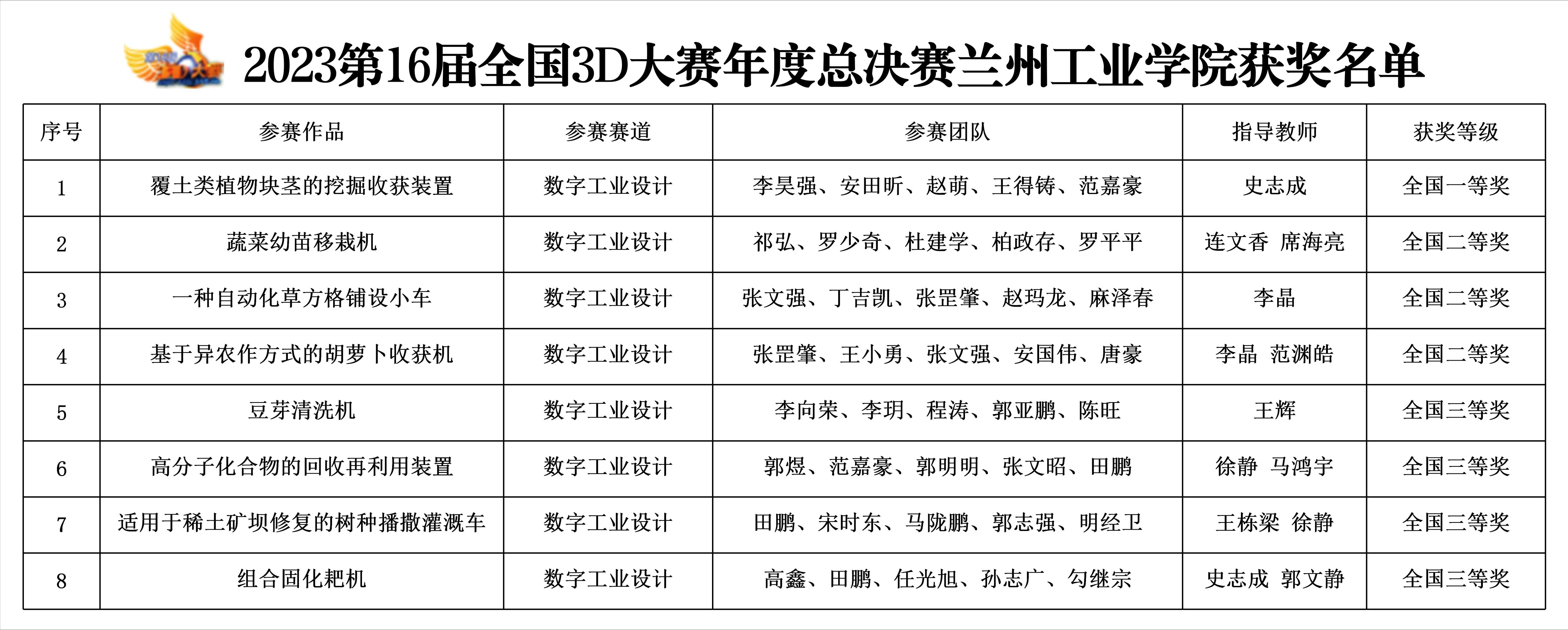 12月18日-20日,第16届全国三维数字化创新设计大赛年度总决赛颁奖盛典在武汉华中科技大学举办。我校共有8项作品入围全国总决赛,经过现场答辩、仿真动画演示等比赛环节的激烈比拼,最终喜获全国一等奖1项、二等奖3项、三等奖4项;学校获得年度总决赛优秀组织奖。