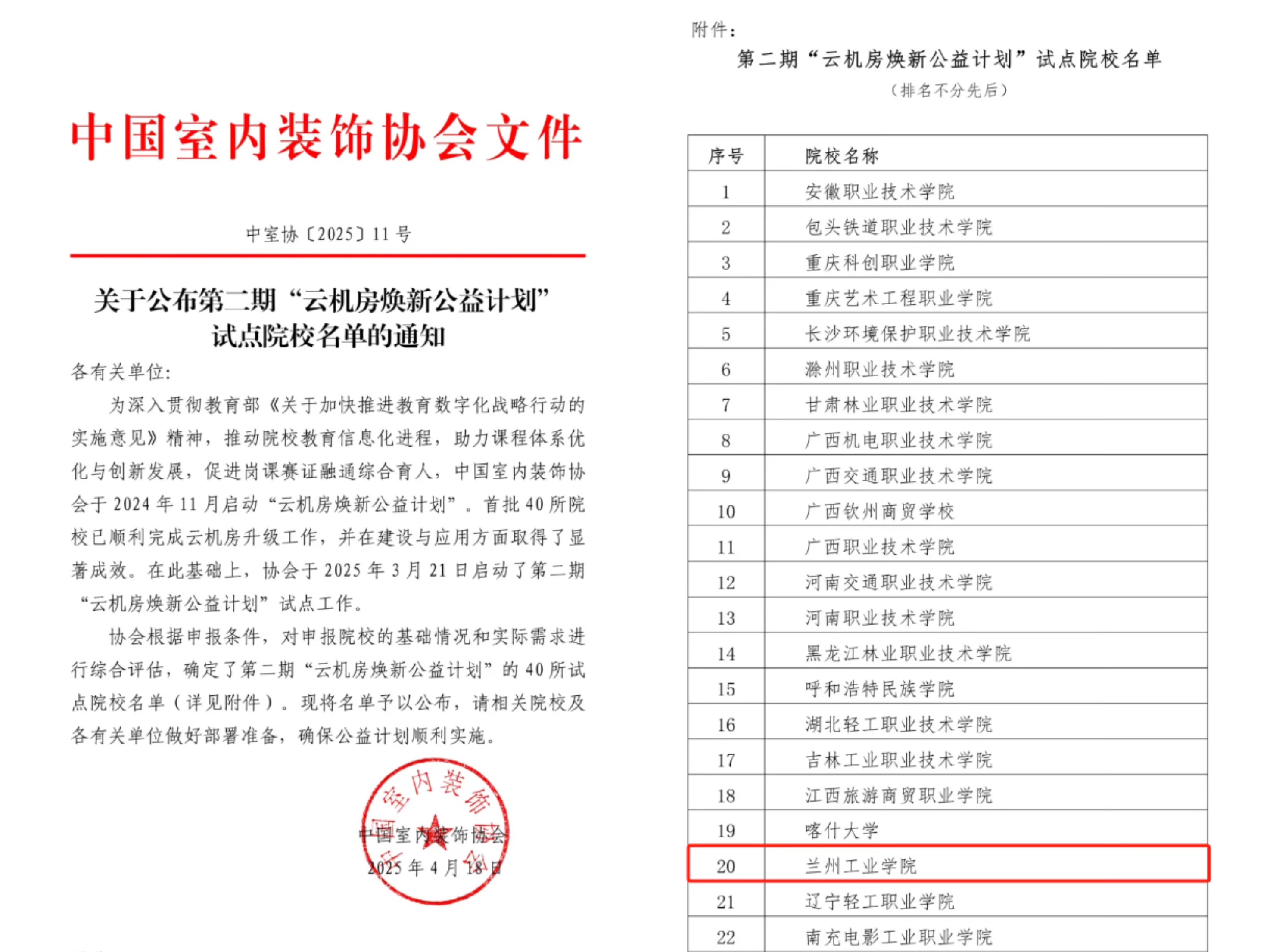 近日,中国室内装饰协会正式公布了第二期“云机房焕新公益计划”试点院校名单,我校艺术设计学院凭借优质的教学基础条件和对教育数字化转型的积极实践,成功入选试点院校。