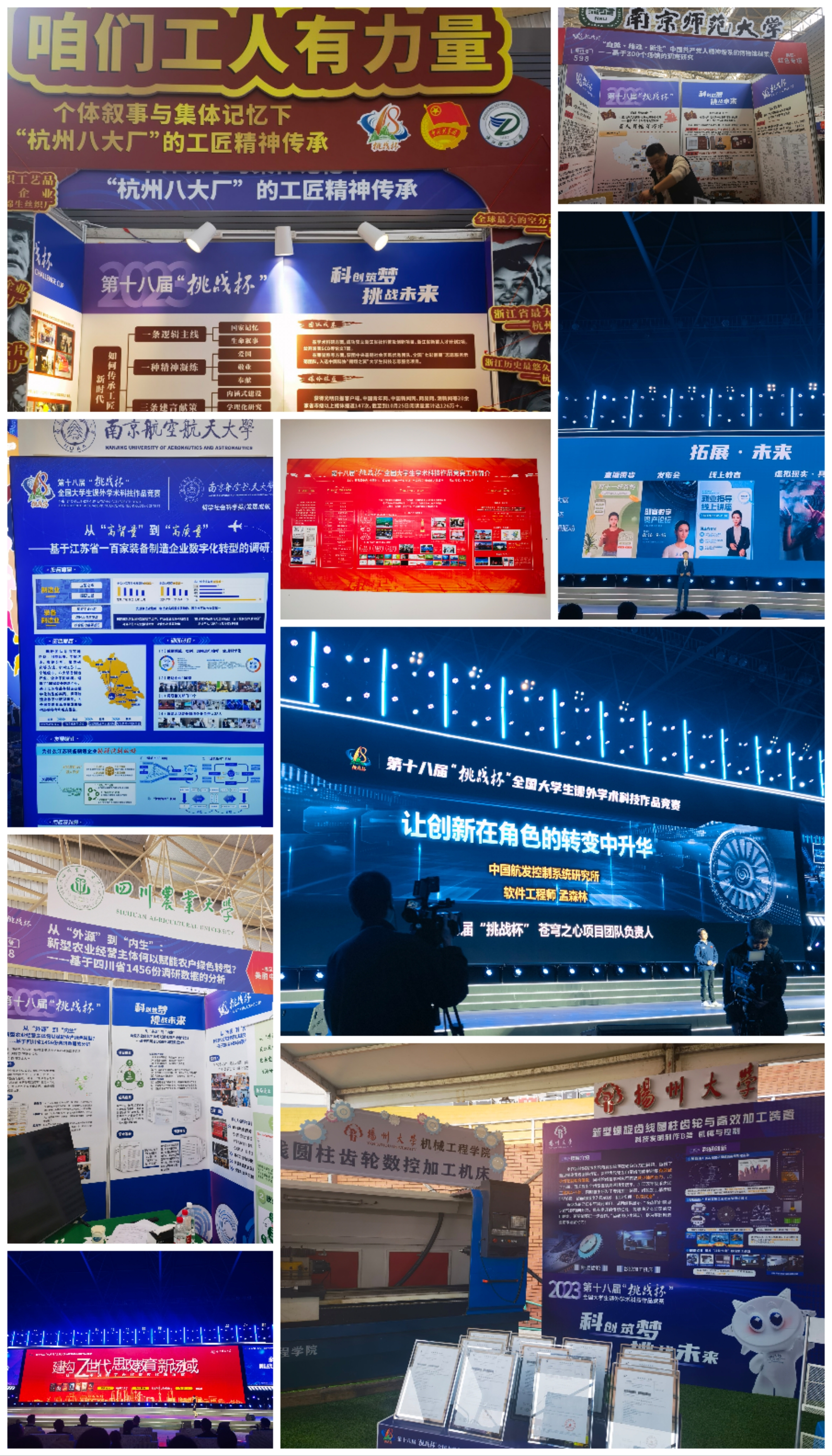 本届竞赛于2022年10月份启动,搭建主体赛、“揭榜挂帅”专项赛、红色专项活动、“黑科技”展示活动有机组成的“1+1+2”赛事整体架构,共吸引全国2000多所高校、40余万作品、250多万学生参赛。终审决赛评选出主体赛特等奖117个,一等奖203个、二等奖377个、三等奖974个(含港澳作品),红色专项活动特等奖46个、一等奖92个,“黑科技”展示活动“星系级”作品99个。我校共有402名教师指导1273名学子的161项作品参赛,经过院级推荐、校赛评比、省赛角逐等层层选拔,最终有5件作品入围国赛,4件作品获得国赛奖项。