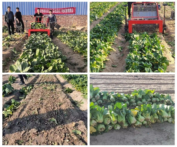 通过总结初次试验中叶菜收获机存在的问题及观摩专家提供的建议,结合当地土质特点,团队历时两个月,从种植农艺、收获机动力、收获机割台升降机构、传送角度、割刀厚度、收获机控制系统等多角度入手,对叶菜收获机进行优化改进。伴随开始收获的指令,叶菜收获机平稳地行走在垄面上,各运动部件配合协调,源源不断的整株上海青随着传送带落入收集框。随着操作人员一次又一次流畅的掉头,一行又一行的上海青被整齐的切根。通过现场观察统计,整株收获率≥95%,主根切断率≥90%,根部留存长度在0.5-2cm之间,符合叶菜收获机技术指标,收获效率达到要求。