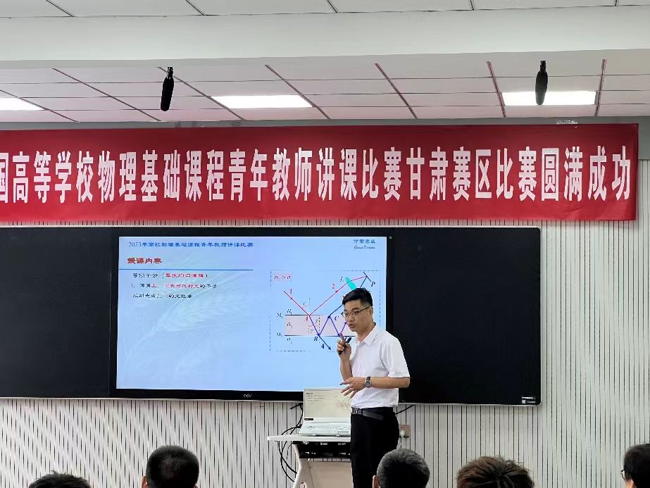 近日,2023年全国高等学校物理基础课程青年教师讲课比赛西北、西南地区复赛落幕。我校基础学科部教师张成基喜获西北赛区一等奖、甘肃赛区特等奖。 该赛事是全国高校物理教学领域的最高赛事,由教育部高等学校大学物理基础课程教学指导委员会、教育部高等学校物理学类专业教学指导委员会和中国物理学会物理教学委员会联合举办,分为省级初赛、地区复赛和全国决赛三个阶段。该赛事为从事一线教学工作的青年教师搭建了施展才华、互学互鉴、教学相长的重要平台,是贯彻新时代全国高等学校本科教育工作会议精神、全国高校思想政治工作会议精神的具体举措,进一步激发和鼓励青年教师投身物理基础课程教学、提升教学水平和教学能力。