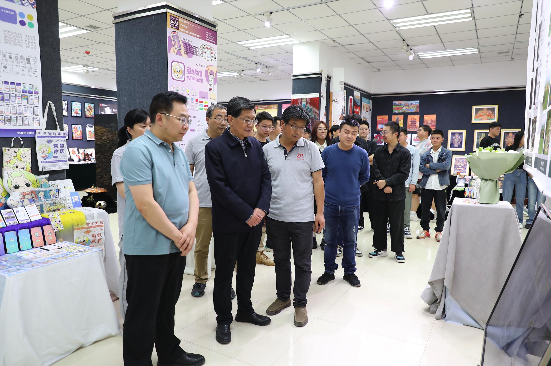 6月6日,艺术设计学院2023届毕业设计作品展在图书馆一楼展厅举办。学校党委书记韦尧兵、校长刘新辉、党委副书记黄荟铭等领导相继到现场观摩指导。