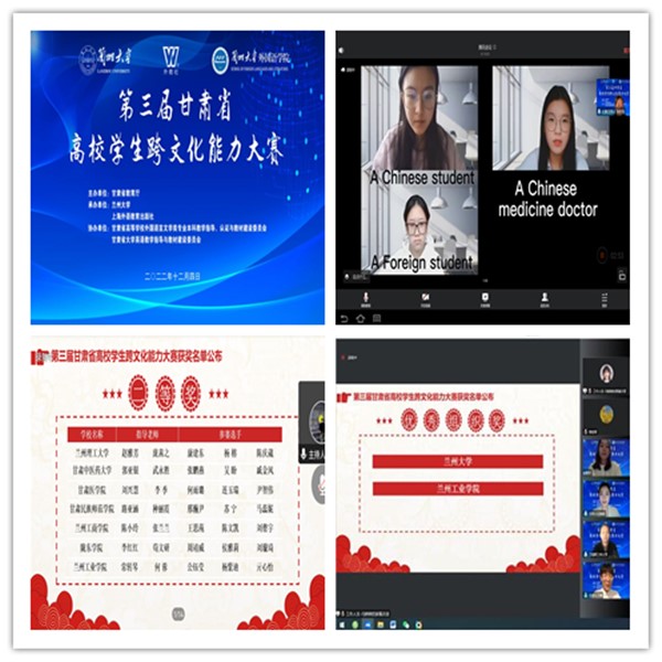 12月4日,由甘肃省教育厅主办,兰州大学和上海外语教育出版社承办的第三届甘肃省高校学生跨文化能力大赛落下帷幕,省内17所高校代表队参加了比赛。 比赛通过腾讯会议在线上进行。经过案例展示、案例提问、跨文化知识提问等三个环节的激烈角逐,我校商英21班公钰莹,造价22班杨紫迪、亓心怡组成的代表队(指导教师:常转琴 何蓉)荣获二等奖;学校荣获优秀组织奖。 此次大赛以“着眼世界增进国际理解,立足中国坚定文化自信”为主题,为师生搭建了一个展示跨文化能力风采、交流跨文化教学经验的对话平台,对推动学校英语教学、创新教学方法、展示教学水平具有积极意义。