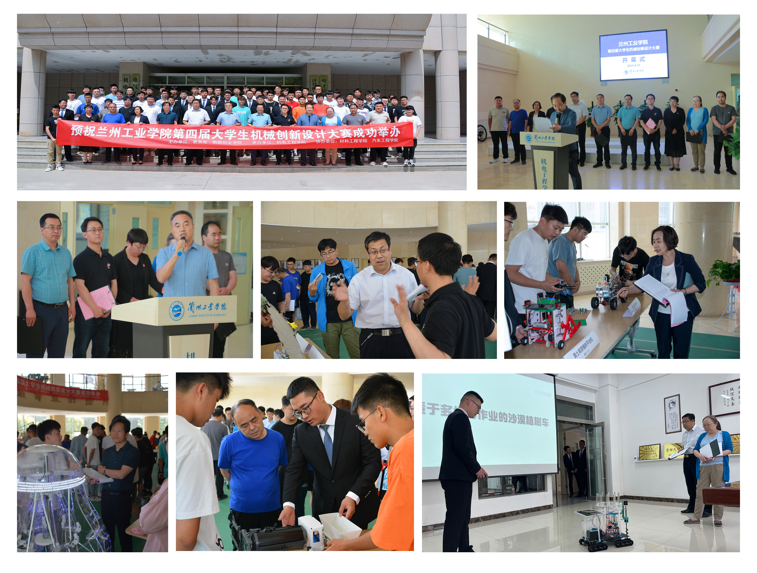 6月7日下午,由教务处、创新创业学院主办,机电工程学院承办,汽车工程学院、材料工程学院协办的学校第四届大学生机械创新设计大赛暨甘肃省第三届大学生机械创新设计大赛选拔赛在科技楼举行。教务处、创新创业学院负责人和来自相关学院的7位评委专家,以及进入校赛决赛阶段的90余名师生代表参加大赛开幕式。