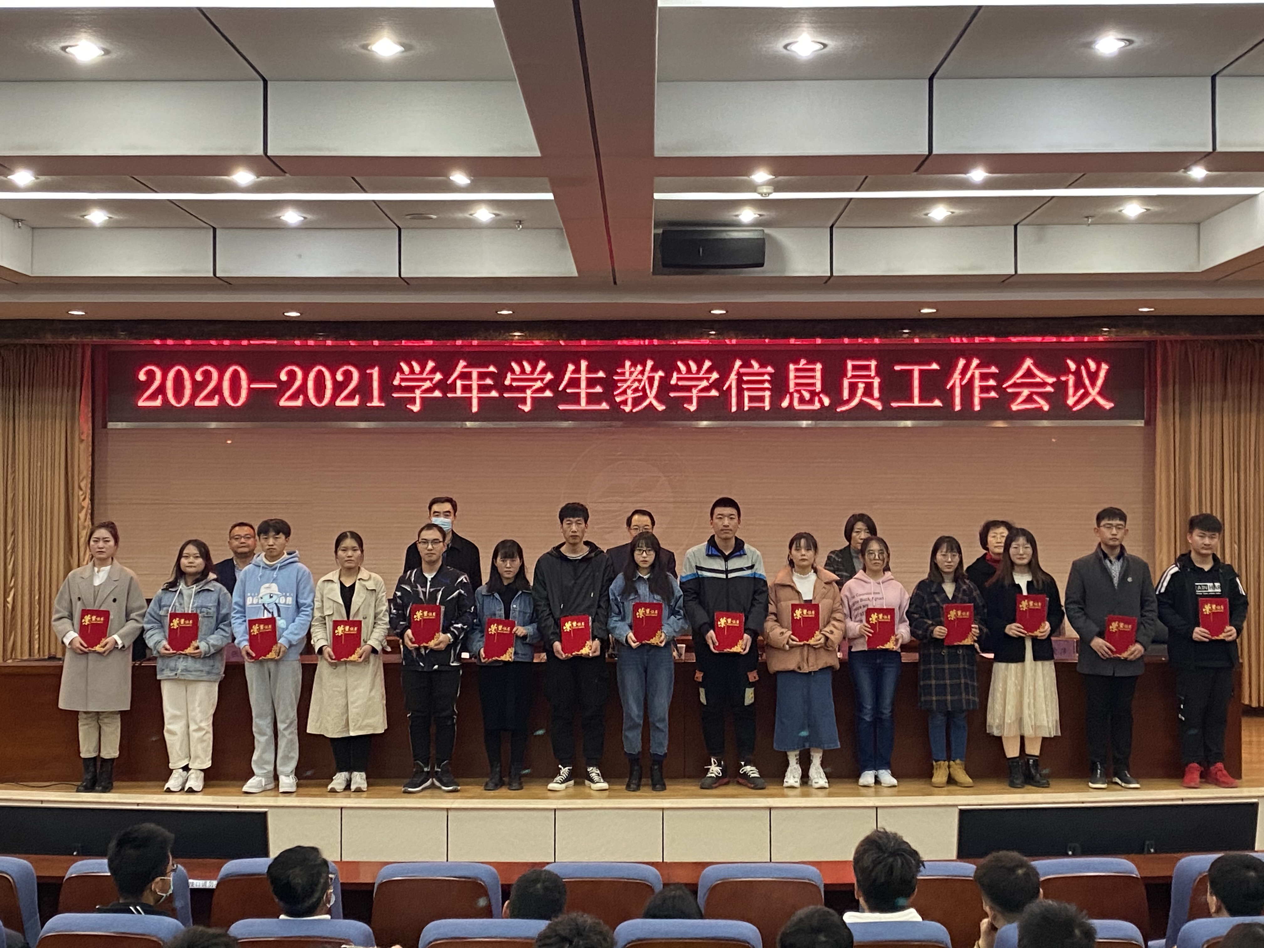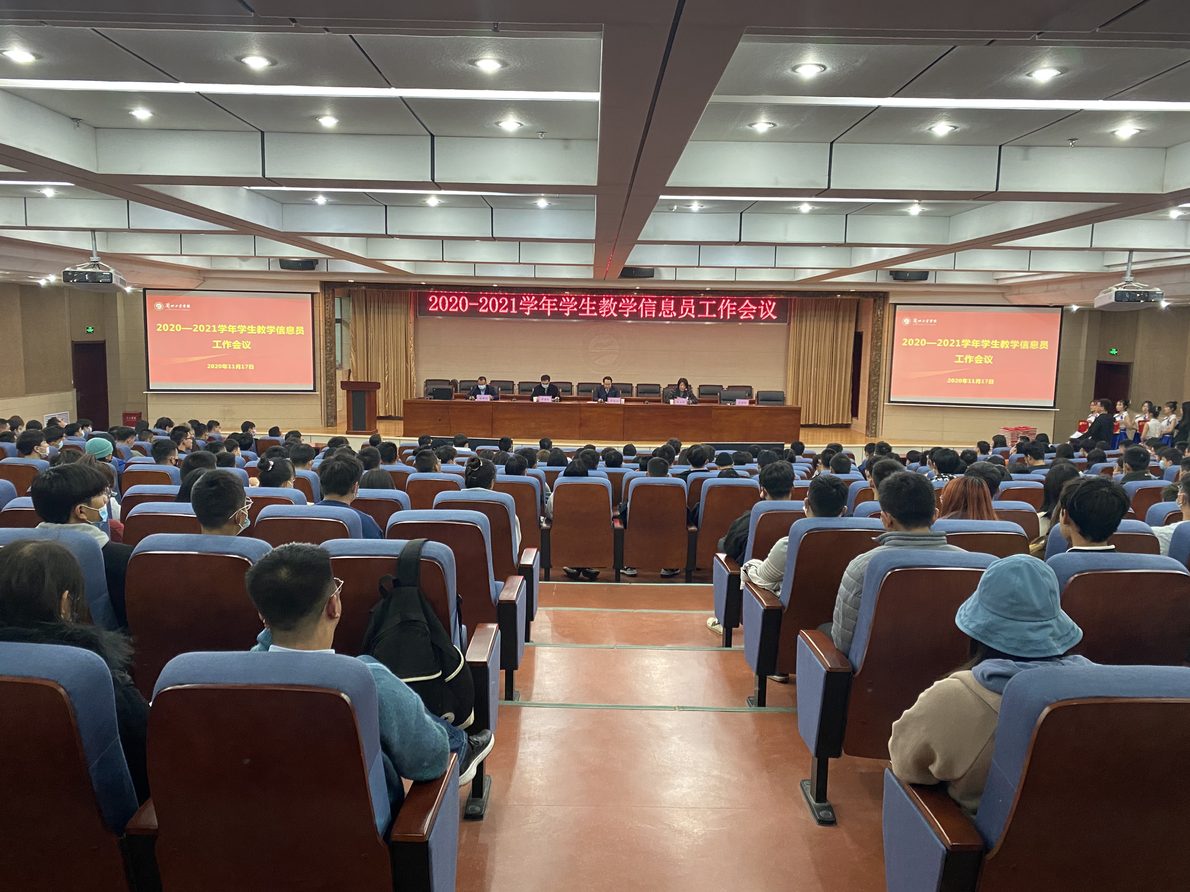 为加强教学质量管理,完善教学信息反馈沟通机制,引导学生积极参与教学质量管理,稳步提升人才培养质量,11月17日下午,学校在第三学术报告厅召开2020-2021学年学生教学信息员工作会议。副校长李贵山出席会议并讲话,校教学督导、教学质量管理处全体成员,学校11个教学信息站站长、全体教学信息员和各班班委参加了会议。