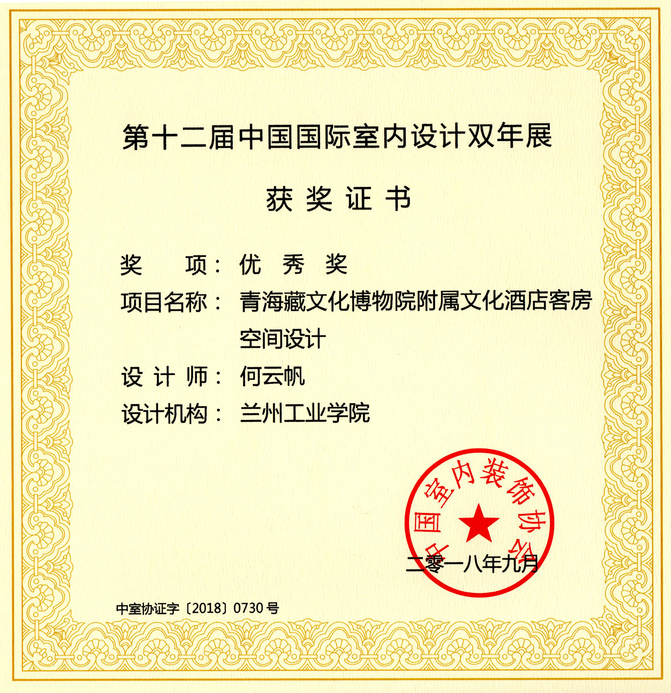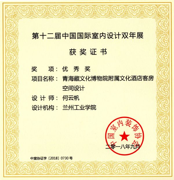 近日,由中国室内装饰协会、联合国教科文组织“创意城市”(上海)推进工作办公室共同主办的2018中国室内设计周暨上海国际室内设计节隆重开幕。在颁奖盛典上,我校艺术设计学院视觉传达设计14-1班学生何云帆《青海藏文化博物院附属文化酒店客房空间设计》作品荣获“优秀奖”。 “中国国际室内设计双年展”是我国室内装饰行业的一项标志性活动,首届展览于1996年12月在北京举行,每两年举办一次,已成功举办了11届,是行业领域覆盖规模和社会影响力最大的顶级赛事之一。此次获奖,是艺术设计学院贯彻落实创新创业改革,实现以赛促学、以赛促教所取得的教学成果。