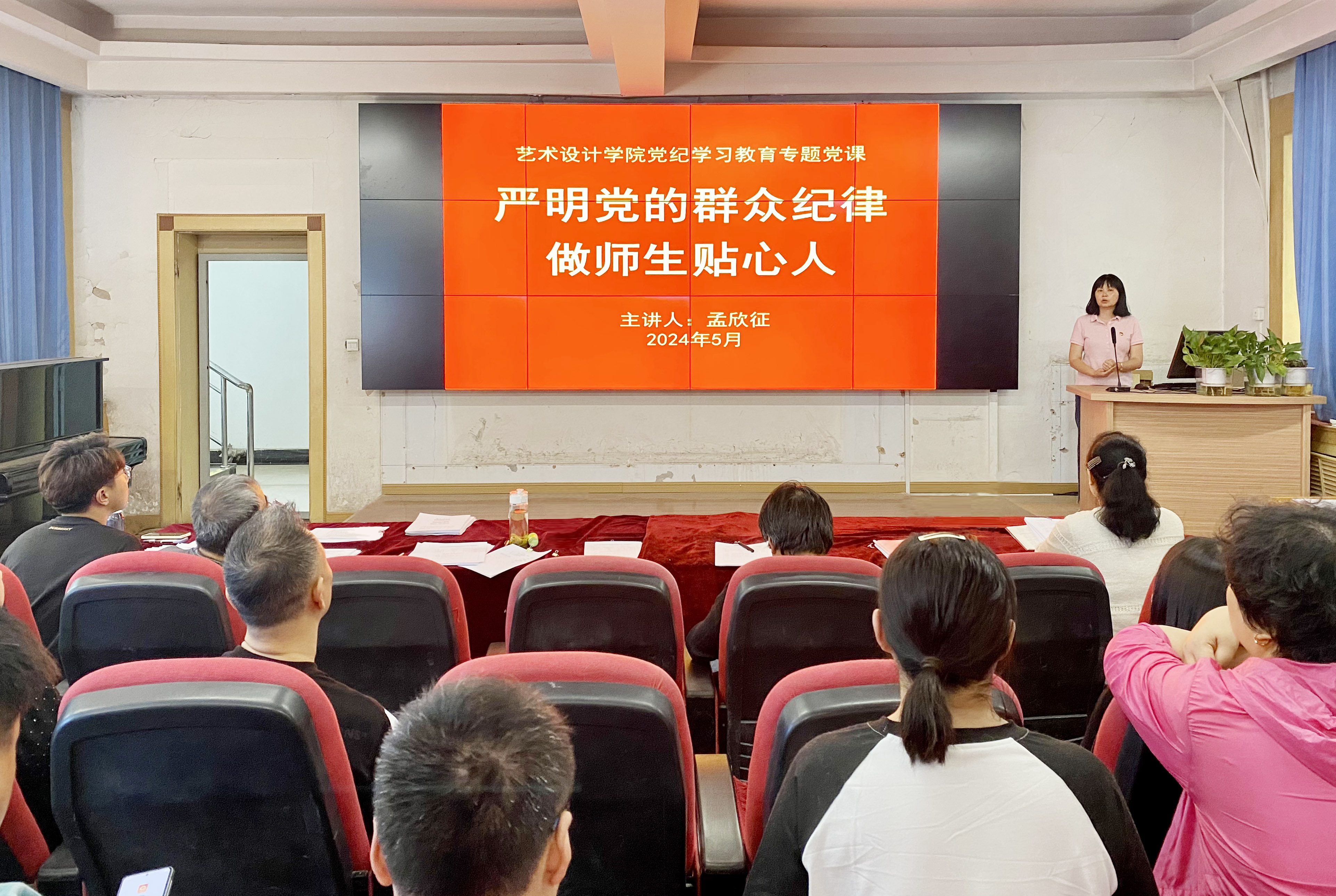 为进一步加强党的纪律建设,提升党员干部的纪律意识和政治素养,5月23日,艺术设计学院党总支在美育讲堂举办党纪学习教育专题党课。本次党课由学院党总支书记孟欣征同志主讲,党总支副书记、副院长杨玉萍主持会议。