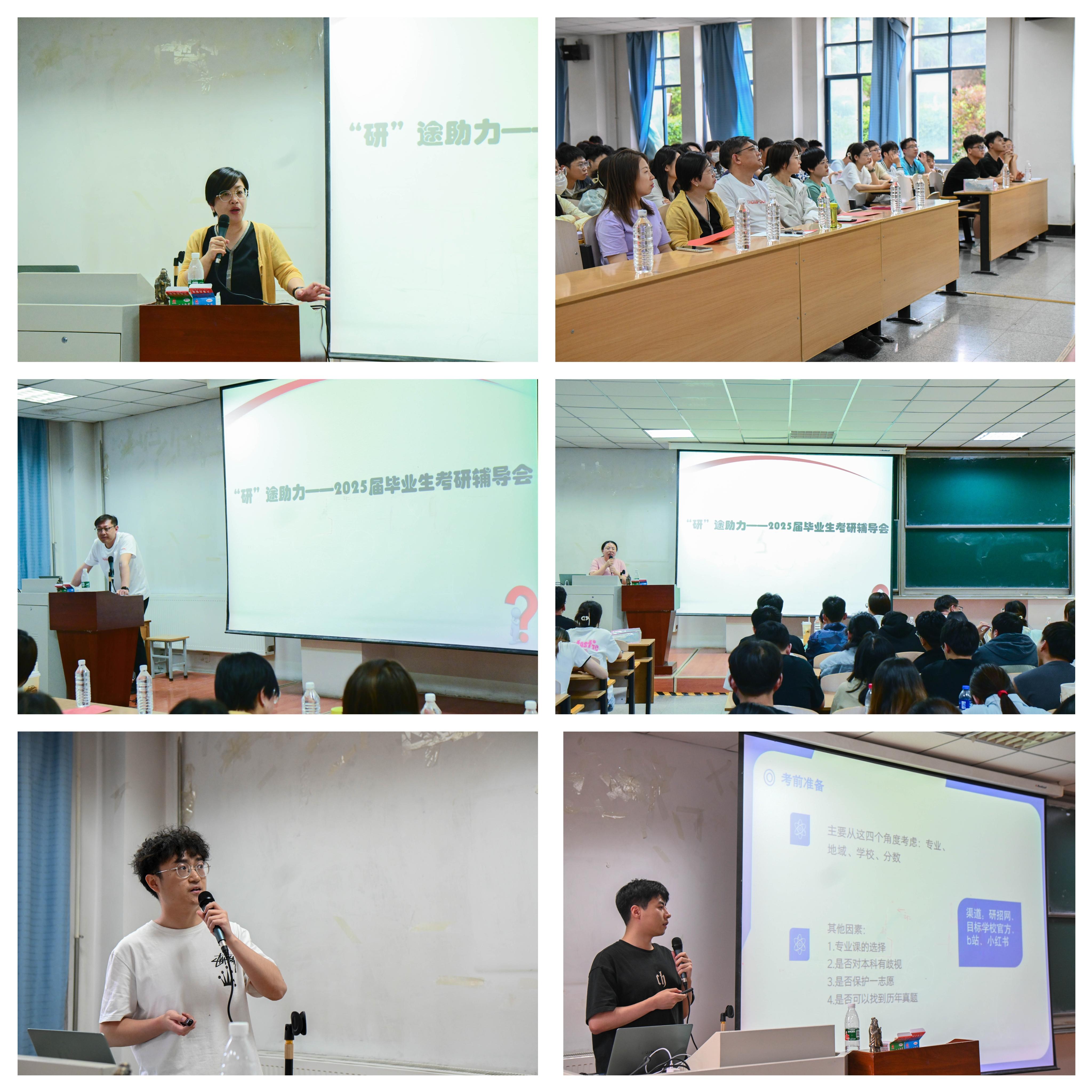 会上,2024届考研上岸学生代表任向围绕考研目标的确立、考研复习计划的制定、复习资料的获取及调剂中注意事项,2024届留学生代表张茗翔围绕语言成绩准备、提升学习绩点、利用寒暑假时间进行实习等内容,分享了他们的考研经历和留学申请经验。