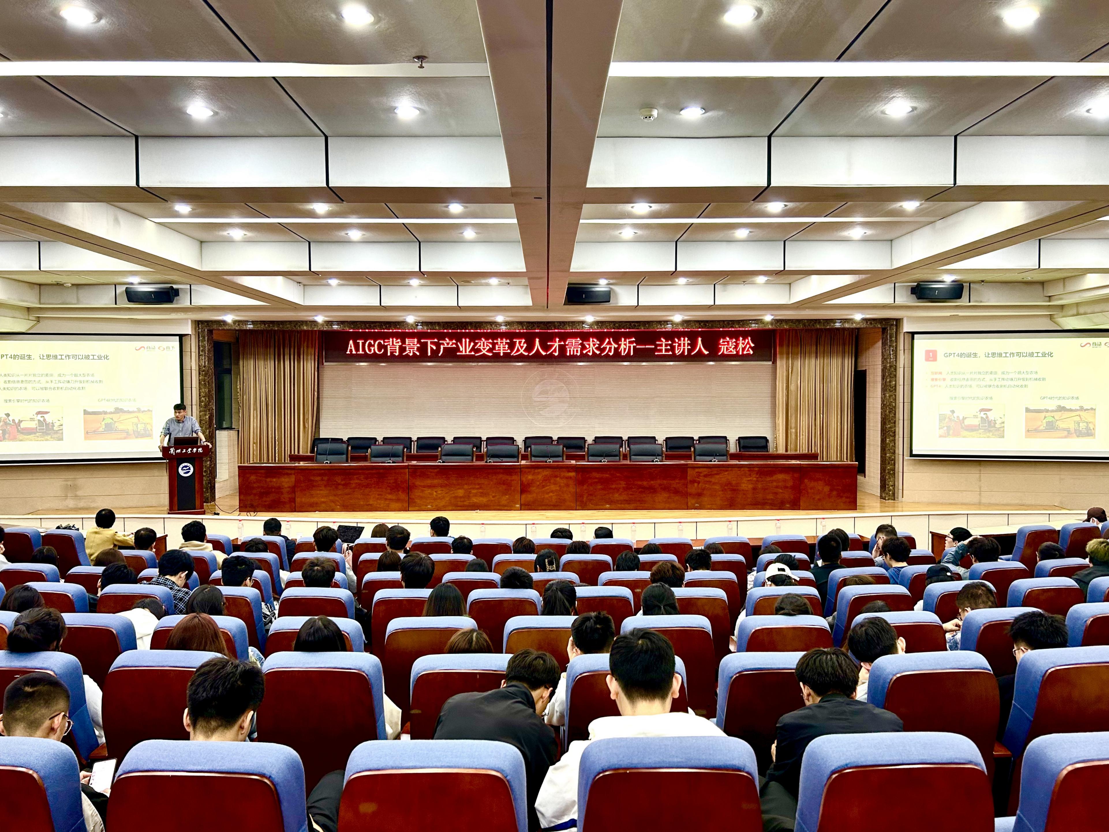 4月18日晚,计算机与人工智能学院在第三学术报告厅举办“AIGC背景下产业变革及人才需求分析”专题讲座。商汤科技解决方案工程师寇松应邀担任主讲人。