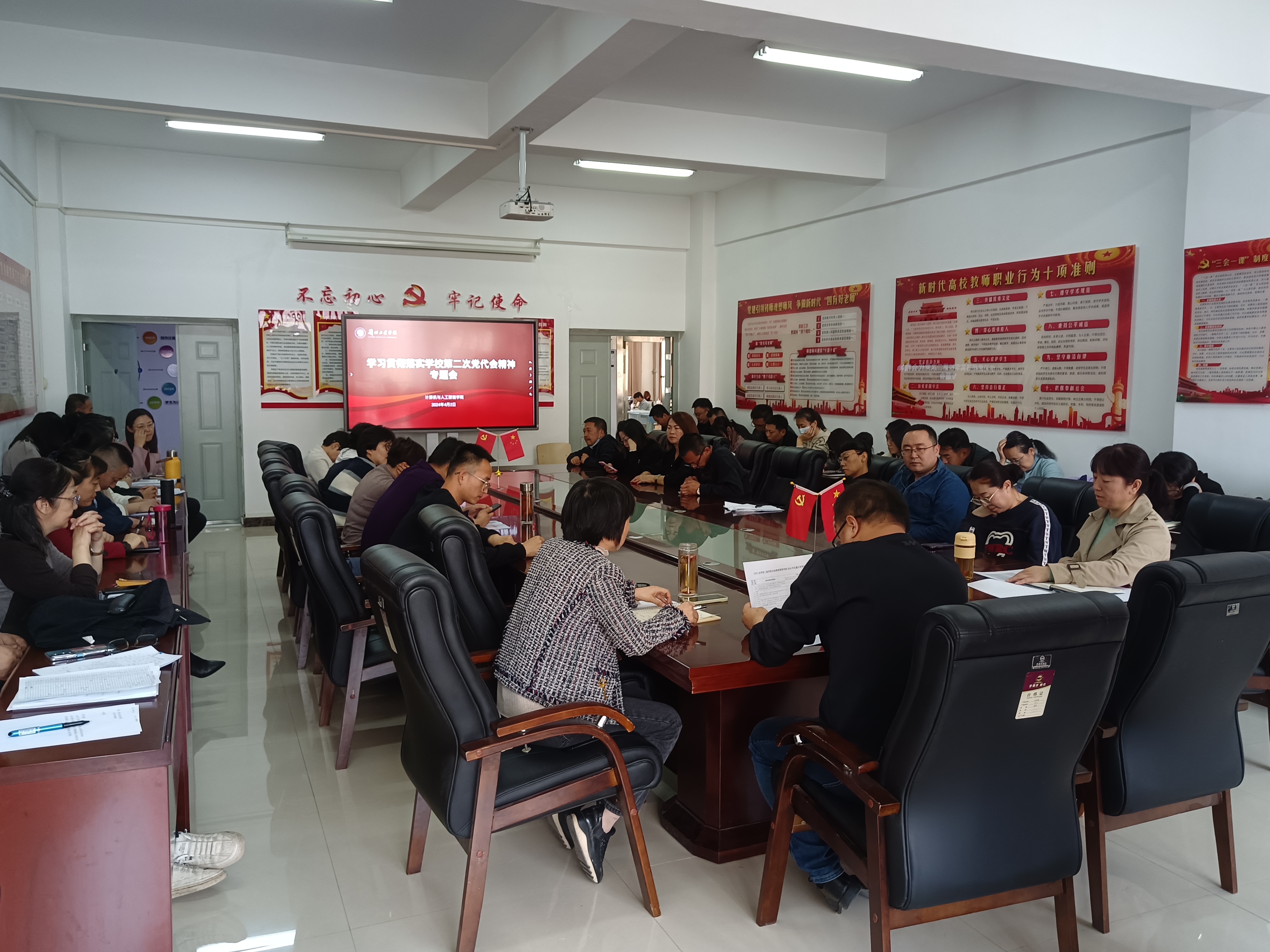 自学校第二次党代会召开以来,学院通过党委理论学习中心组集中学习,召开党员大会、教工大会和团委学生工作例会,党代表带头领学党委书记韦尧兵在学校第二次党代会上所作的《锚定目标 勇毅前行 努力创建高水平应用技术大学》的工作报告等,将学校第二次党代会精神传达到每一位党员,每一位师生。