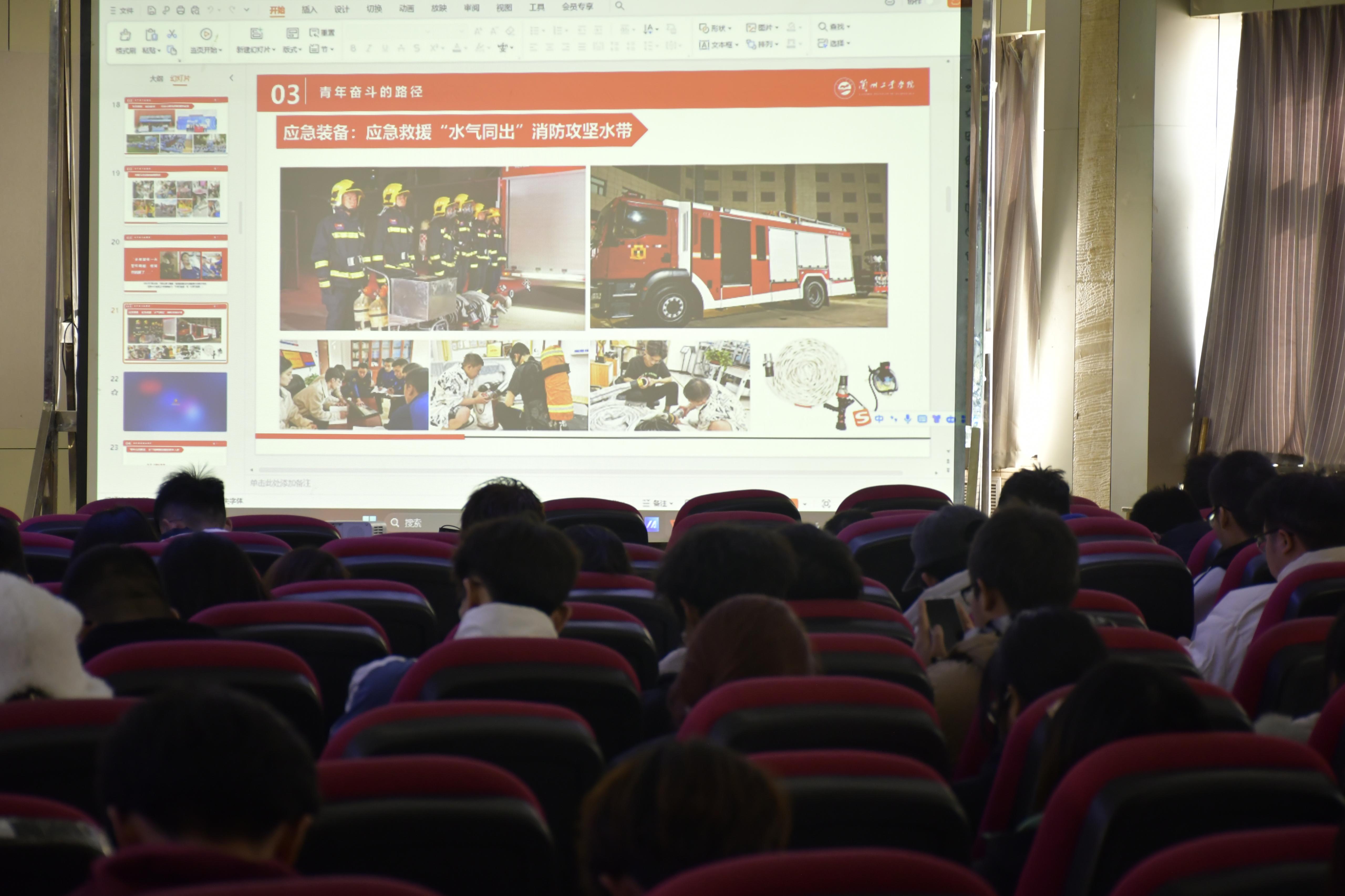 学校各班级团支部书记、校院两级学生会主席团成员,部分学生社团团支部成员共计300余人参加报告会。