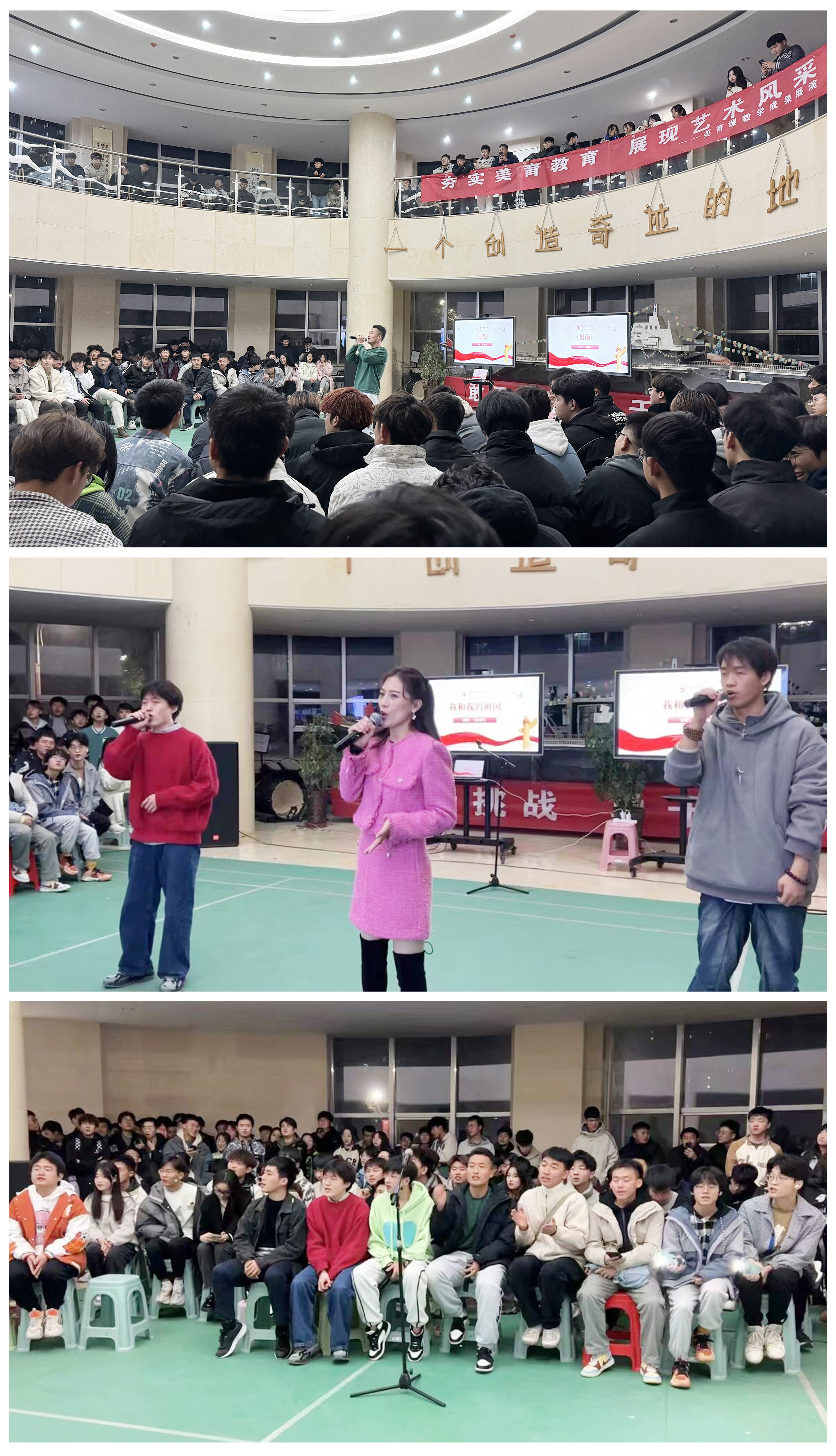 11月23日,科技楼歌声嘹亮,掌声雷动,艺术设计学院 “夯实美育教育,展示艺术风采”美育课教学成果展演活动在这里举办。《超越时空的音乐》《歌唱艺术与名曲赏析》任课教师及全校300余名学生参与活动。