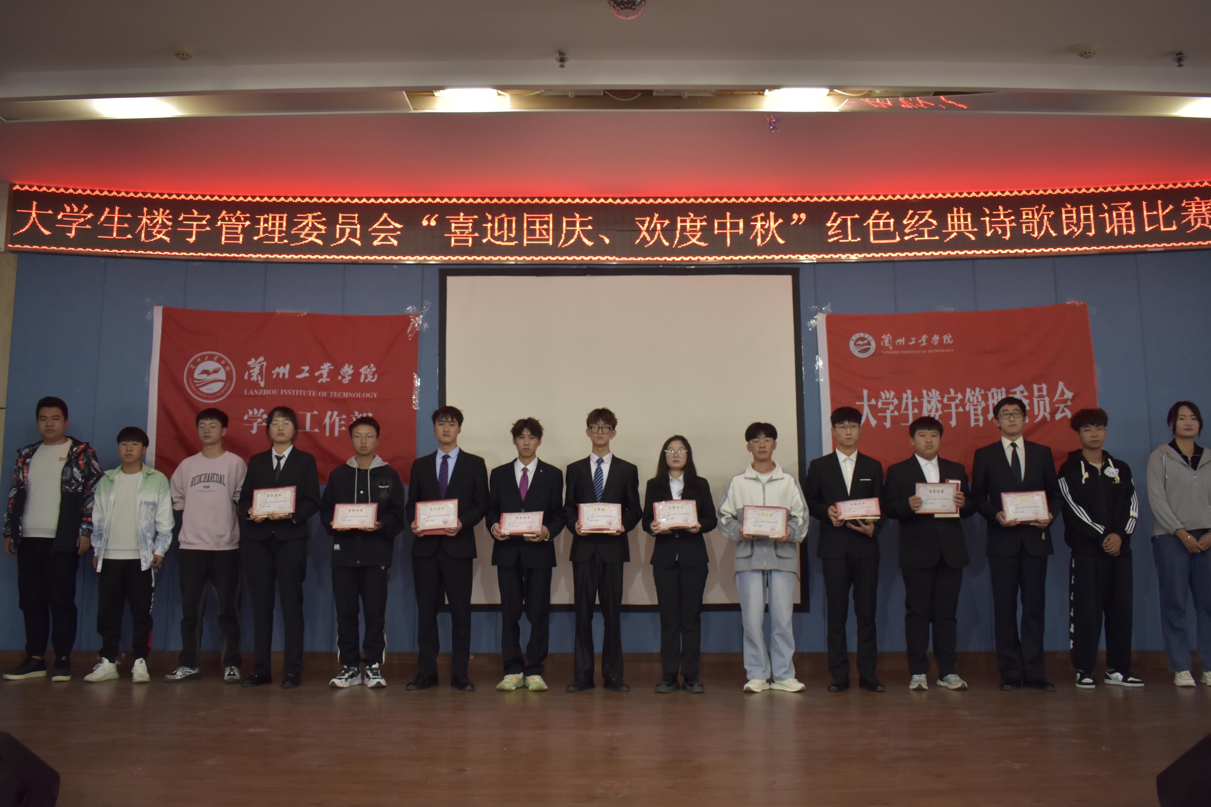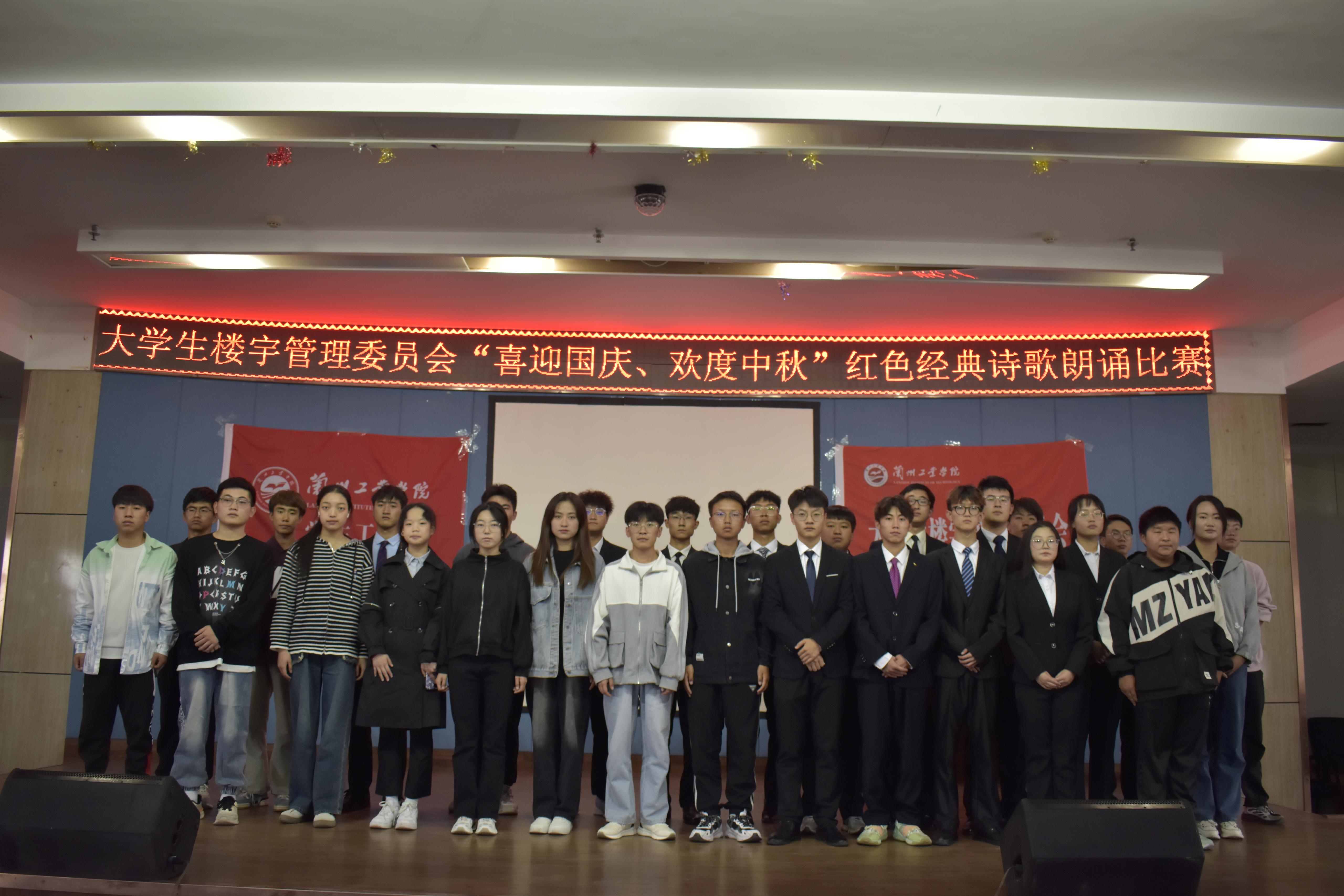 9月24日,由学生工作处主办,大学生楼宇管理委员会承办的“喜迎国庆,欢度中秋,共筑中国梦”红色经典诗歌朗诵比赛在八楼会议中心举办。全校200余名学生参加本次活动。