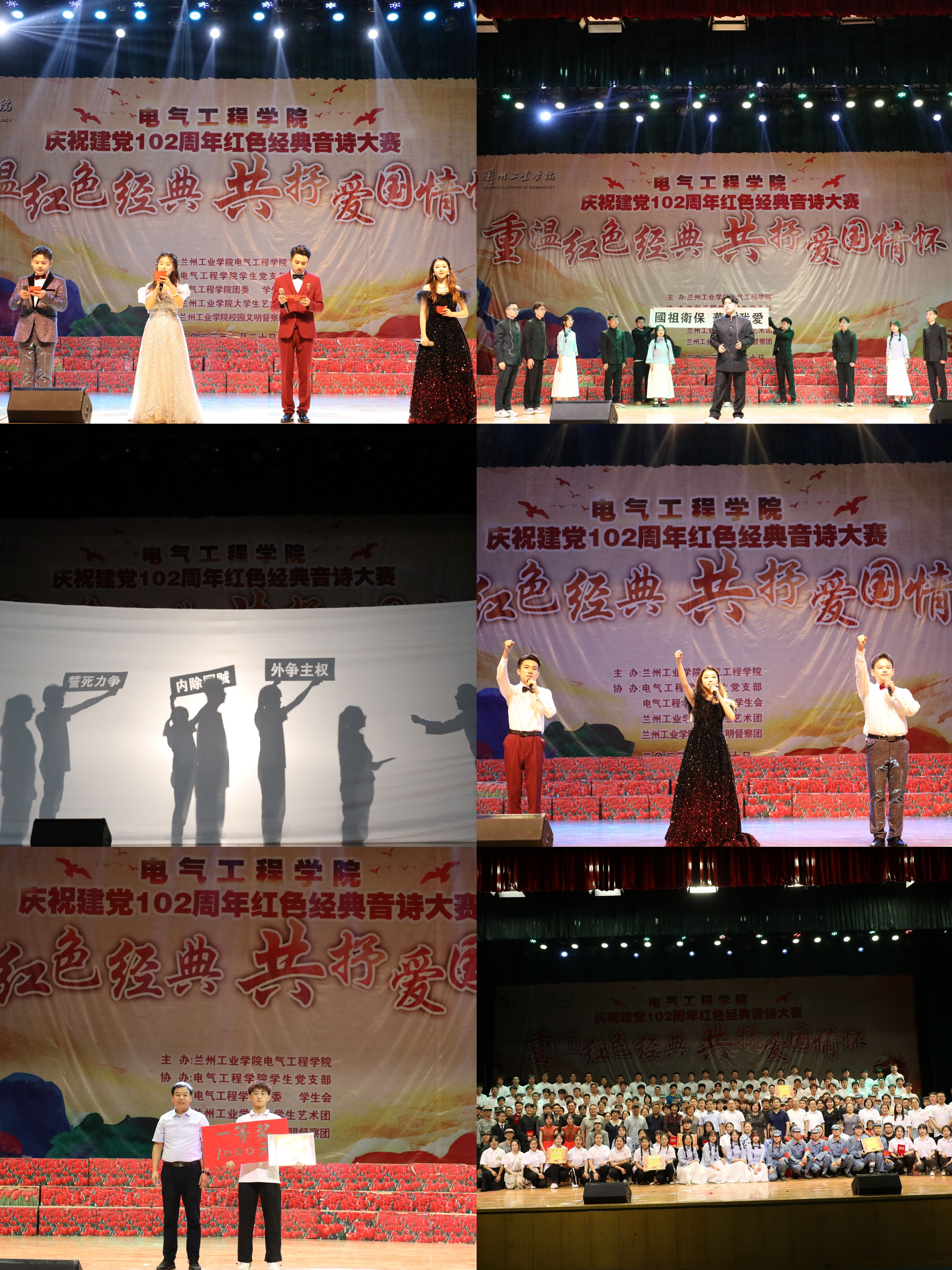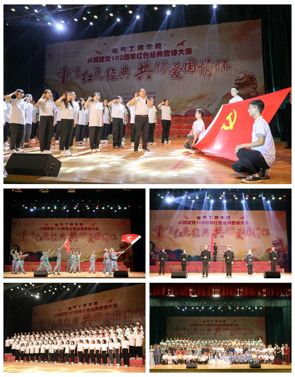为庆祝建党102周年,牢记党的奋斗历程,热情讴歌党的光辉业绩,继承和发扬党的光辉传统和优良作风,进一步推动主题教育深入开展,6月22日下午,电气工程学院在大礼堂举行了以“重温红色经典 共抒爱国情怀”为主题的庆祝建党102周年红色经典音诗大赛。副校长王佰成,党委委员、党委统战部部长张红岩出席本次活动。党委组织部、学工部、质管处、校工会、团委、离退休职工服务中心等部门负责人,电气工程学院领导班子、全体师生观看了比赛。