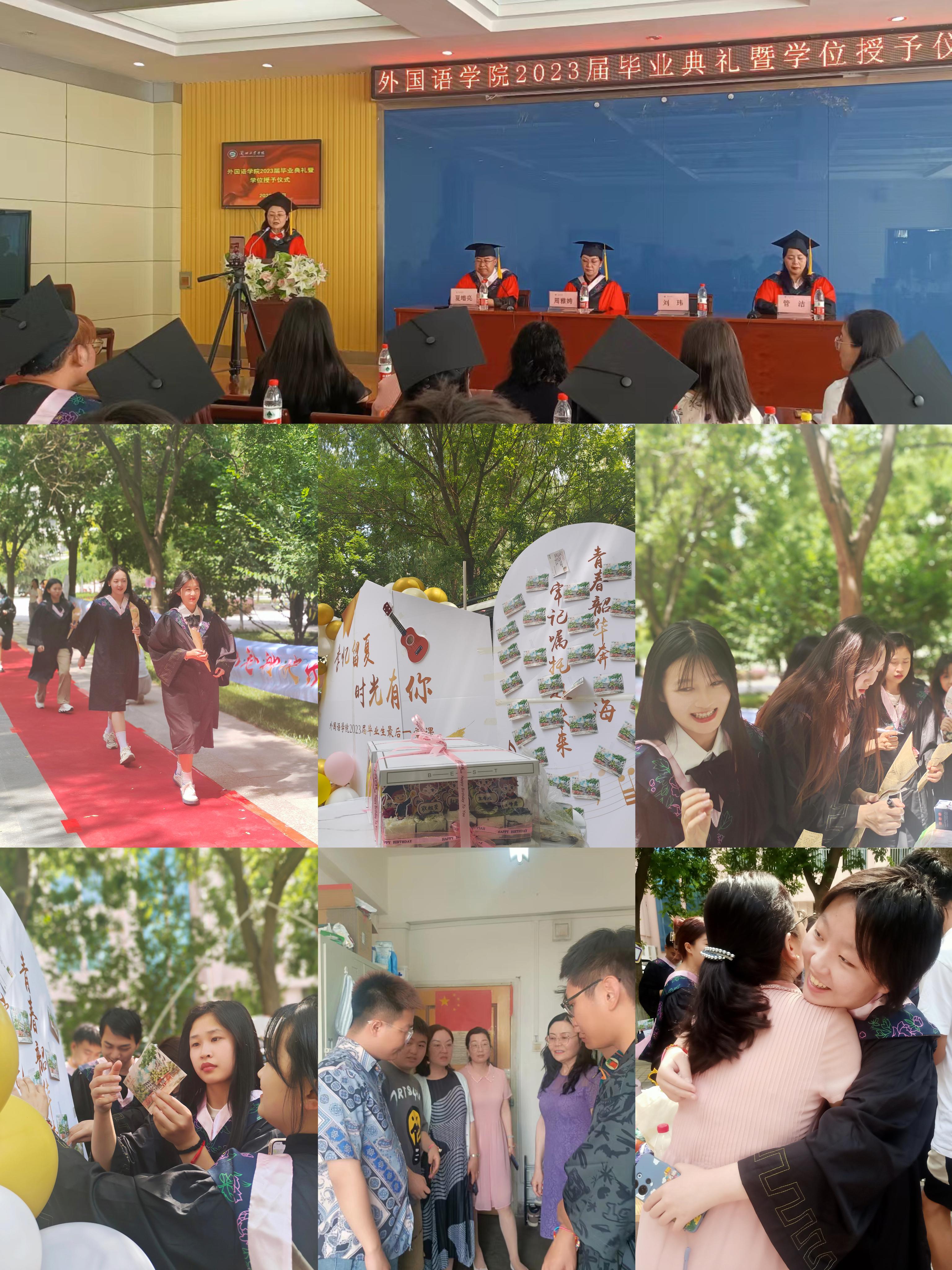 6月16日下午,外国语学院结合三抓三促行动和毕业生离校教育,以“念师恩、赴未来”为主题,精心设计了毕业生最后一堂课。学院党总支书记周雅娉、院长刘玮,全体辅导员、班主任、专业课教师以及2023届全体毕业生参加活动。