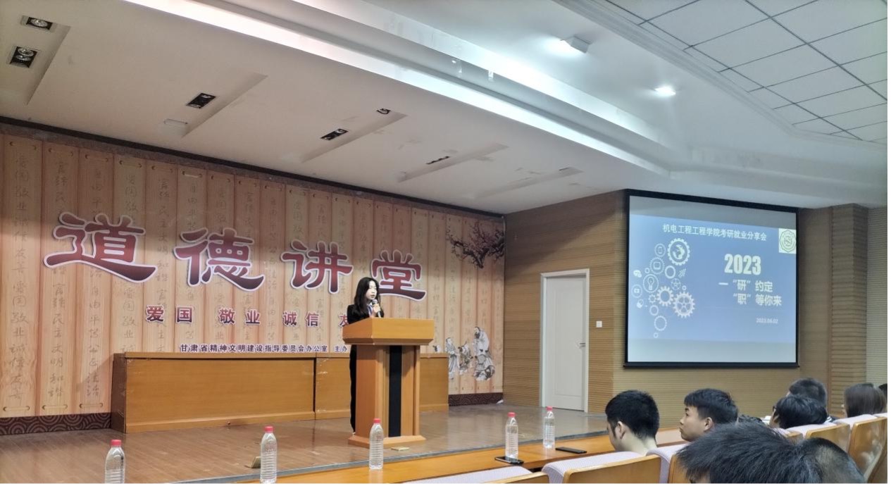 为深入学习贯彻习近平新时代中国特色社会主义思想和党的二十大精神,推动主题教育和“三抓三促”行动走深走实,进一步提高学生考研就业能力,6月6日,机电工程学院在第二学术报告厅举办 “一研为定,职等你来”考研就业分享会。全体辅导员及大二大三学生到场参加。