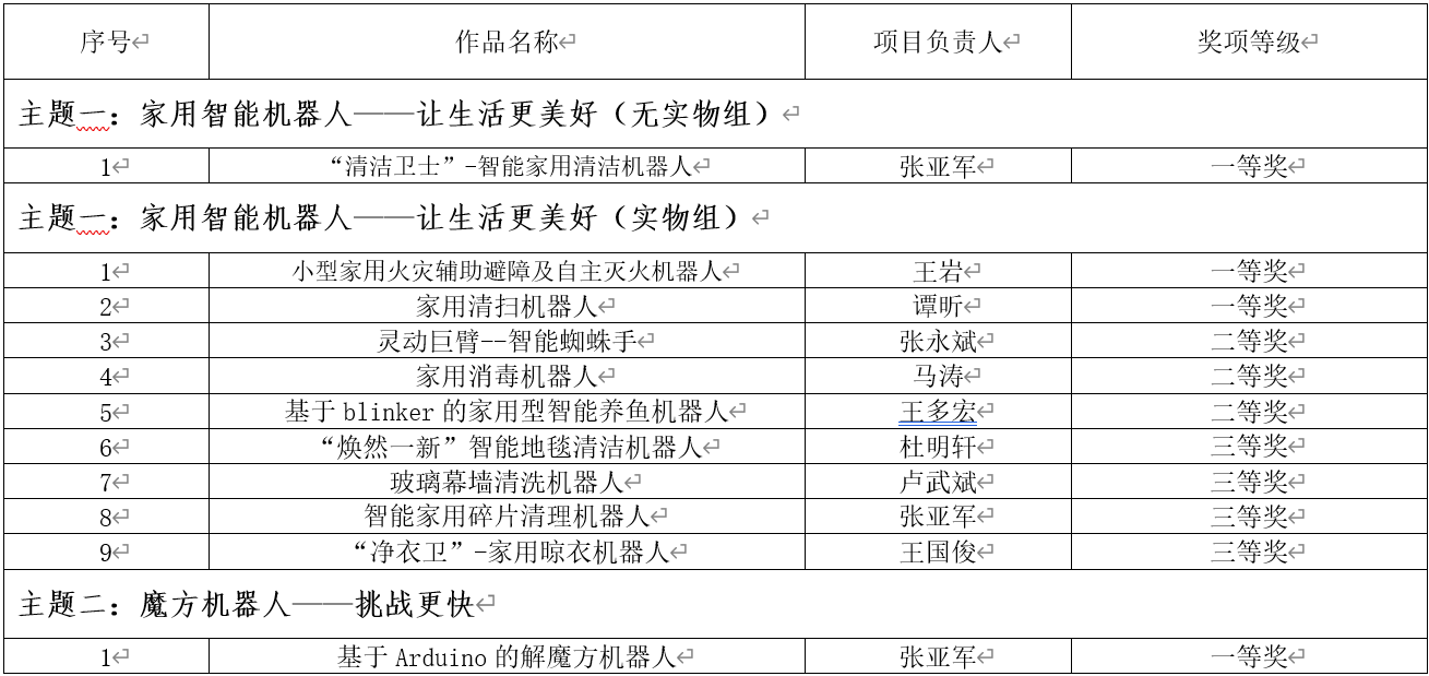 来自机电工程学院、汽车工程学院等24支队伍120余名师生参加了大赛决赛。经过激烈角逐,最终评选出“智能家居——让生活更美好”主题无实物组一等奖1项,实物组一等奖2项、二等奖3项、三等奖4项;“魔方机器人——挑战更快”主题一等奖1项。