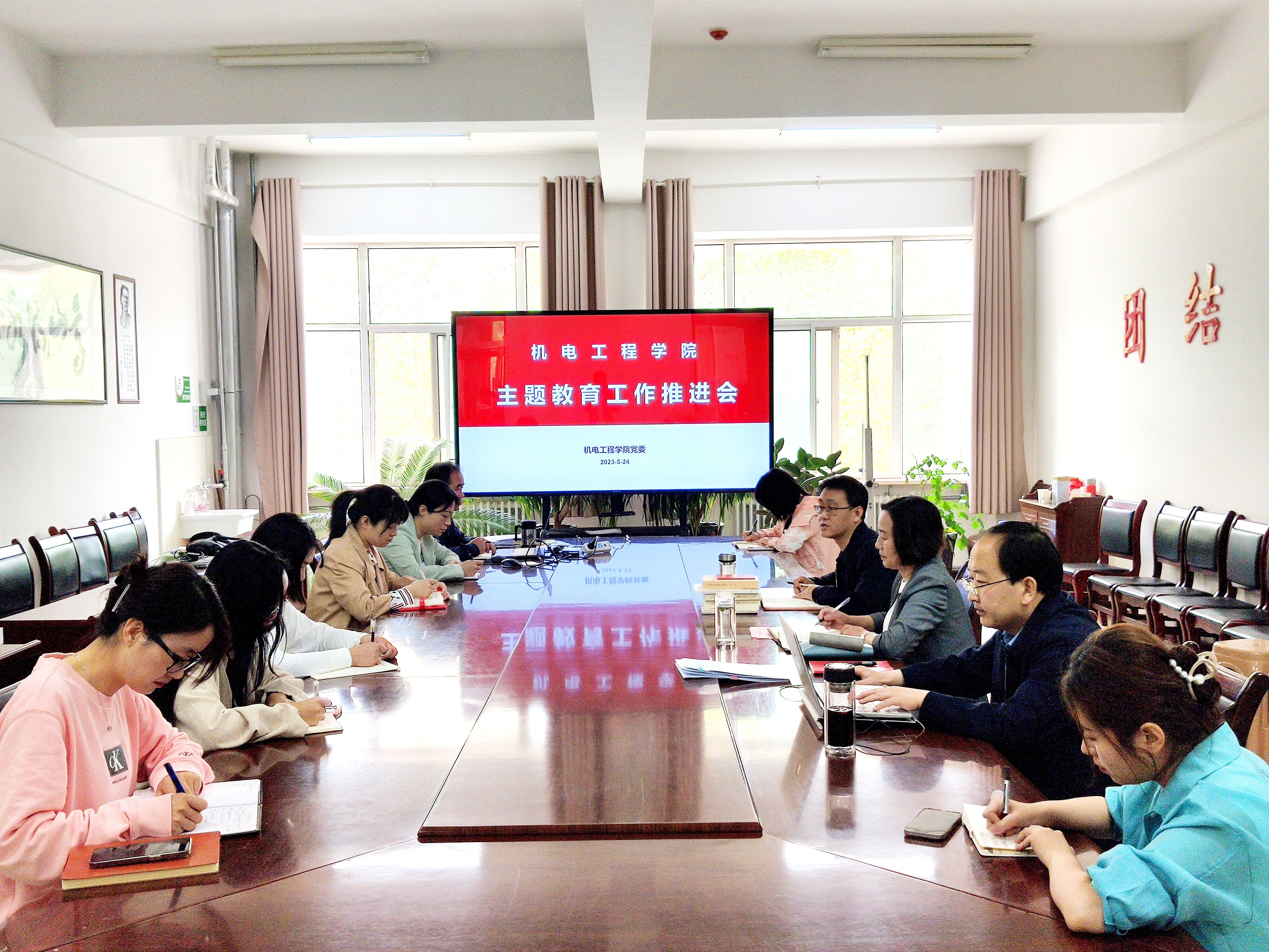 5月24日上午,机电工程学院在学院会议室召开主题教育工作推进会。会议由学院党委书记陆斌主持,学院领导班子和各支部书记参加会议。