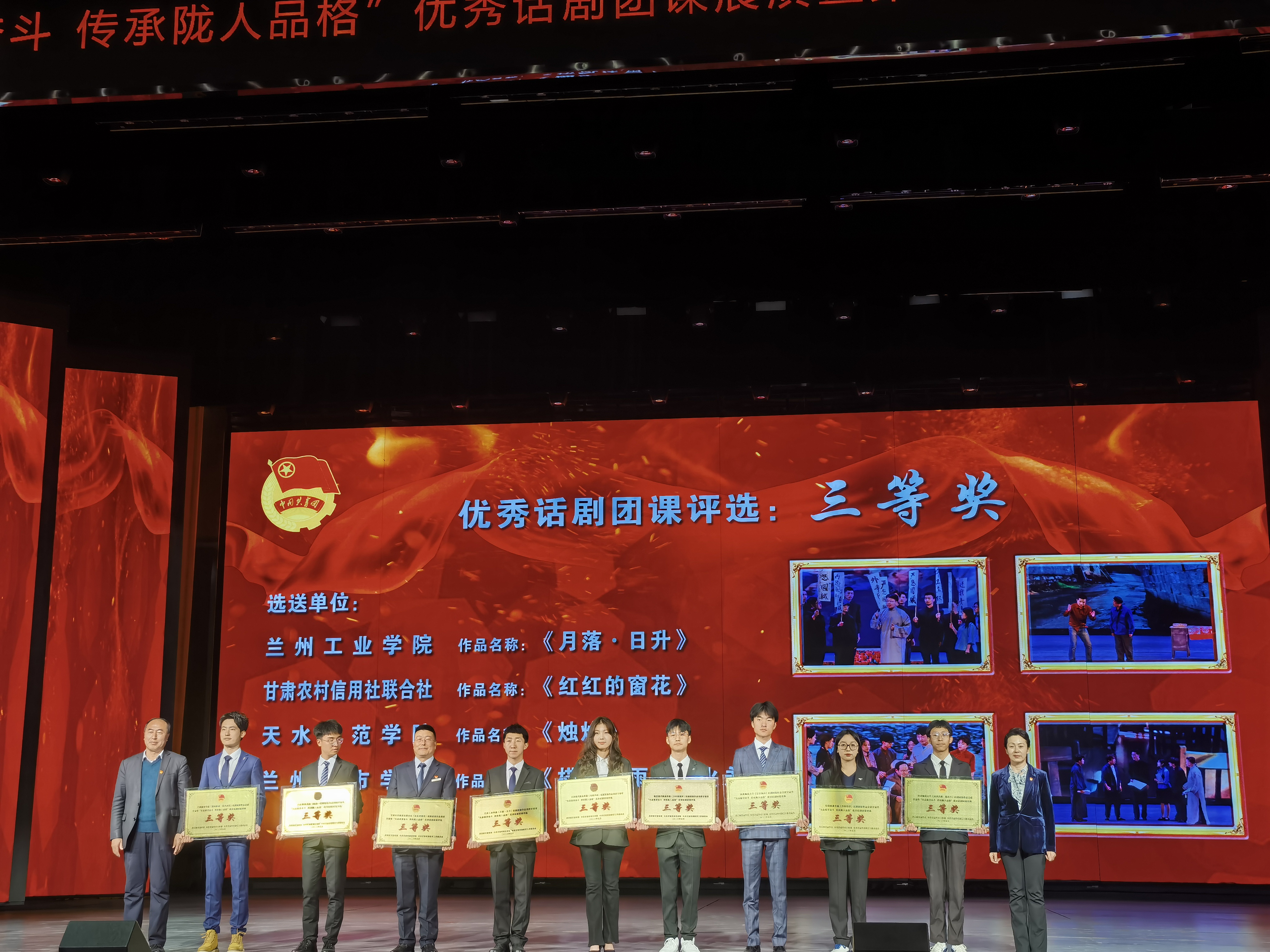 5月4日下午,由共青团甘肃省委联合省委宣传部、省教育厅共同主办的甘肃省“矢志艰苦奋斗 传承陇人品格”优秀话剧团课展演暨第27届甘肃青年五四奖章颁奖典礼在兰州举办。经过复赛、决赛激烈角逐,大赛共评选出27部优秀作品,我校推荐的作品《月落·日升》荣获三等奖。