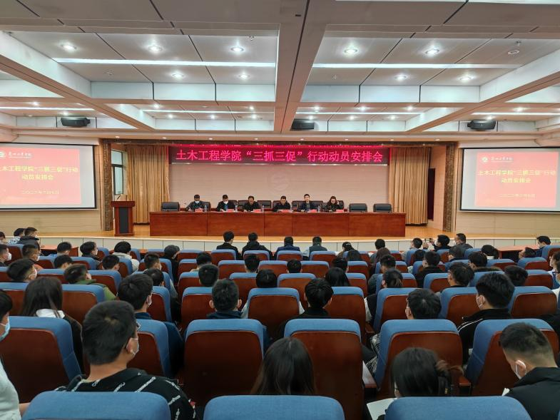 3月7日下午,土木工程学院在第三学术报告厅召开“三抓三促”行动动员安排会。学院院长袁尚科主持会议,全体教师、学生党员、学生会负责人、各班班长及团支书参加会议。
