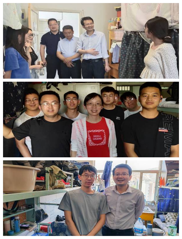 6月15日下午,土木工程学院党委书记张明朗,院长袁尚科,党委副书记、副院长任永忠来到毕业生宿舍,看望学院2022届毕业生,为即将离校的毕业生们送去祝福与期望。18级辅导员,毕业班班主任参加走访活动。 每到一个宿舍,院领导都与学生详细交谈,了解毕业生就业落实情况、离校手续办理情况和生活近况,叮嘱毕业生在离校期间注重人身安全、财产安全,珍惜最后的校园时光,不负韶华,做到文明安全离校,希望大家毕业后常回母校看看。