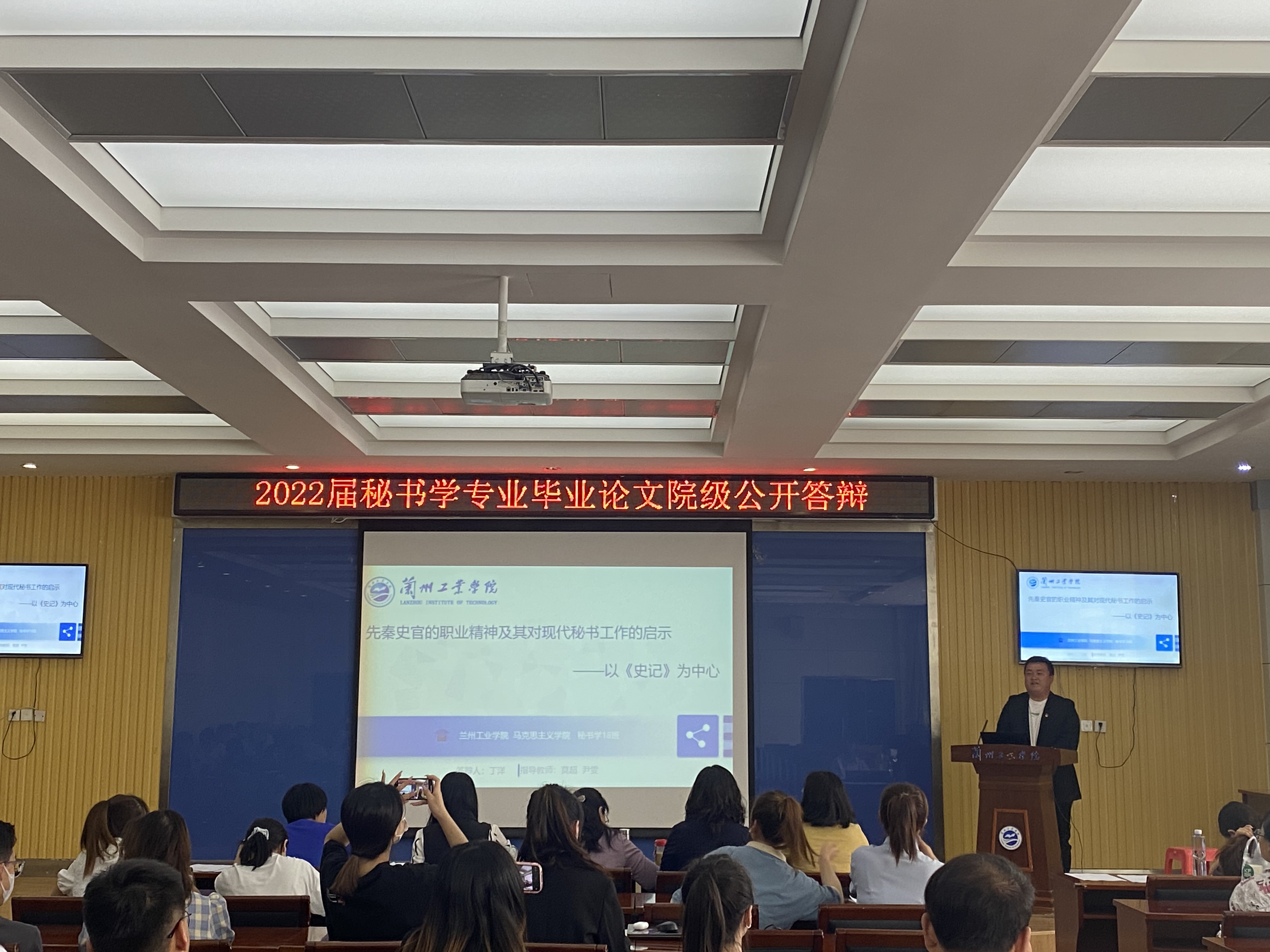 5月26日,马克思主义学院在第一学术报告厅举行2022届秘书学专业毕业论文院级公开答辩。学院院长张小华、党总支书记罗柏林、各小组论文指导教师担任答辩评委。